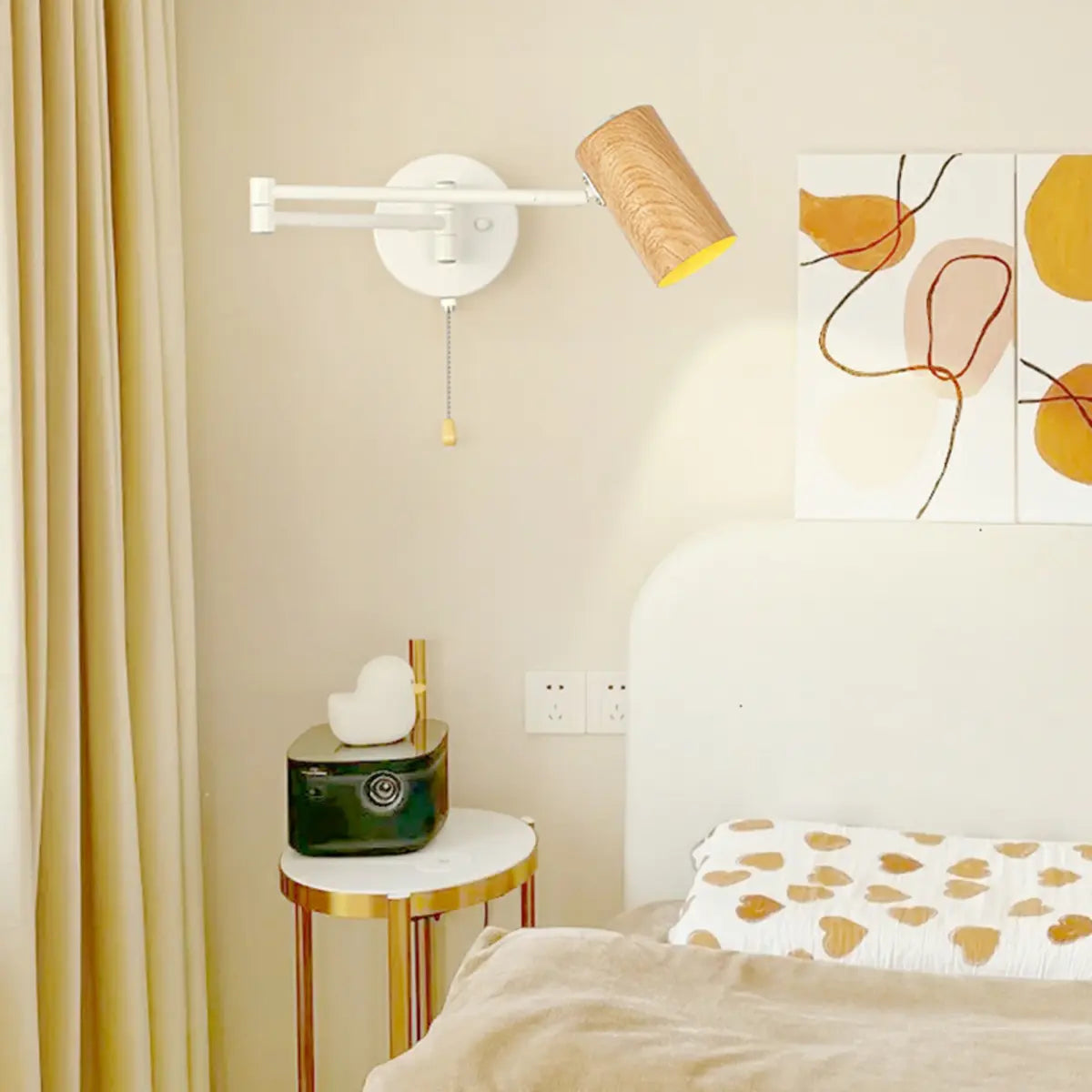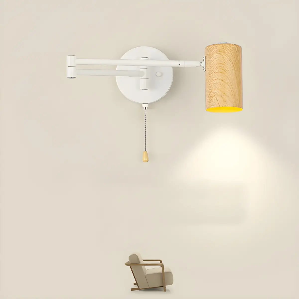 ZOWALA - Nordic Wood Color Cylinder White Swing Arm Light
