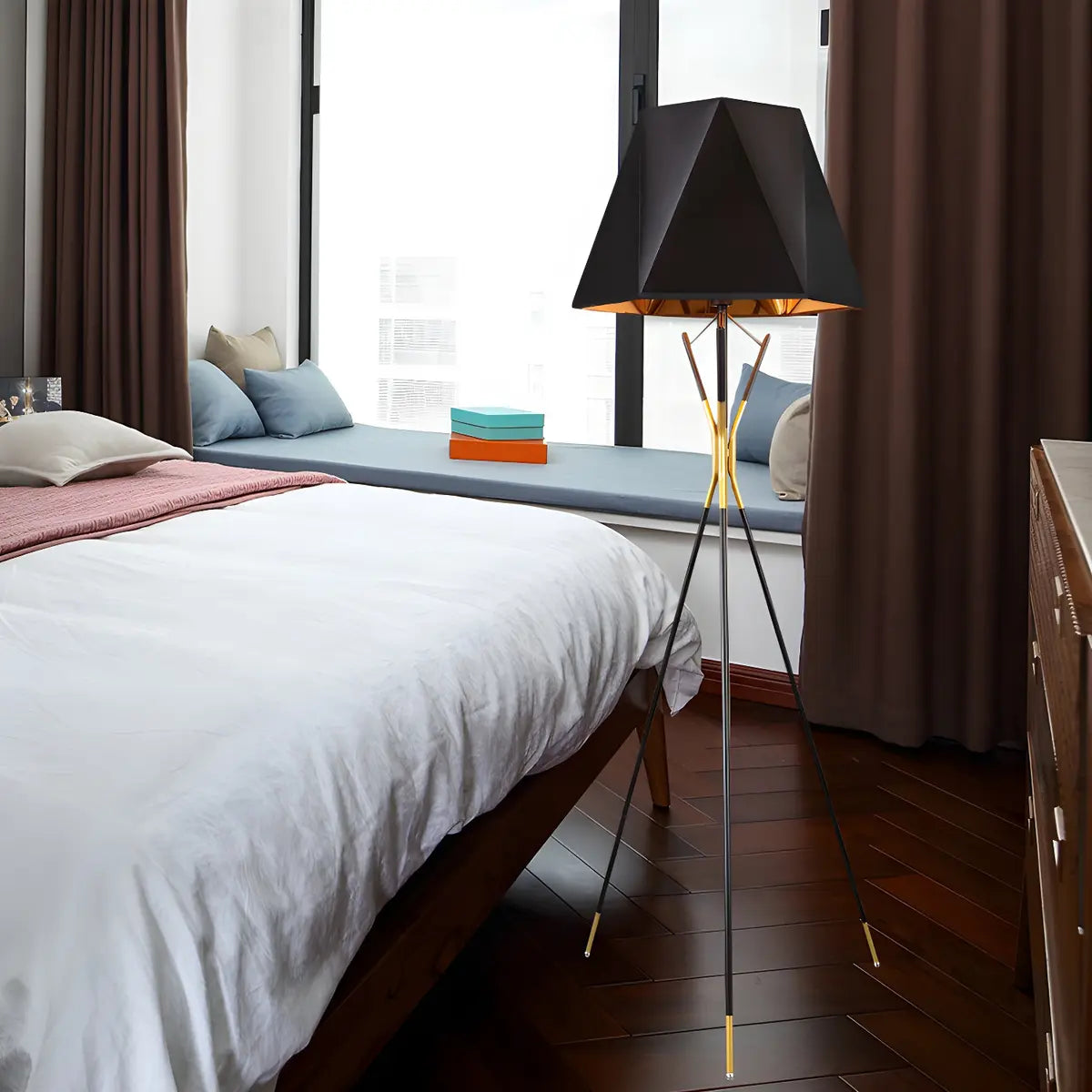ZOWALA - Nordic Tripod Black-Gold Geometric Floor Lamp