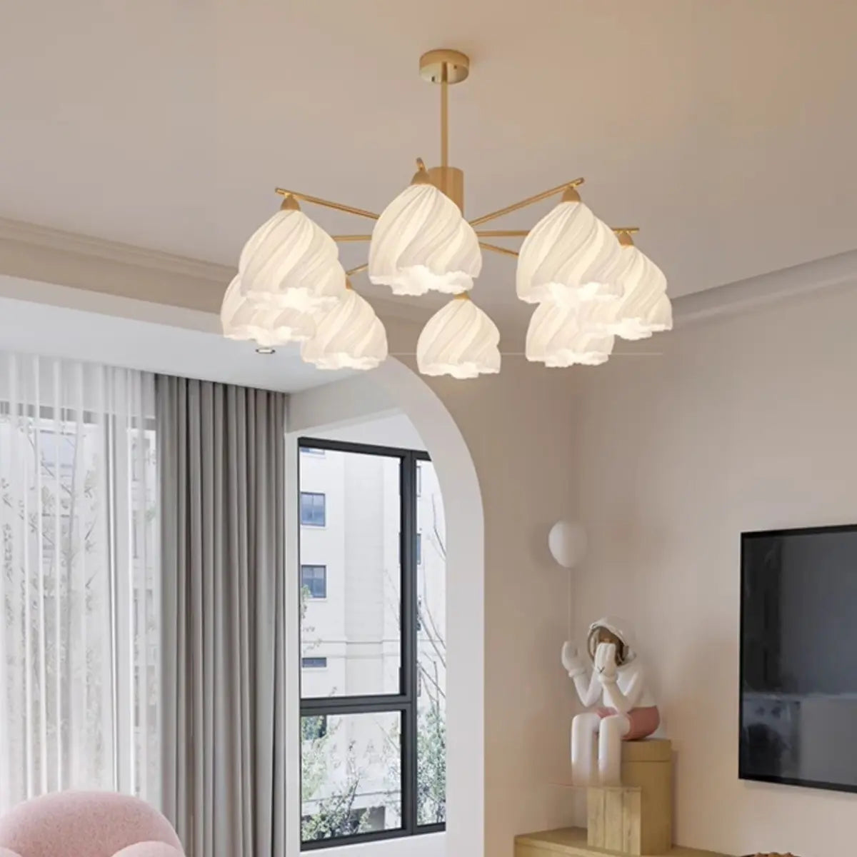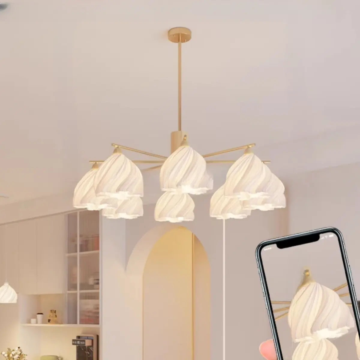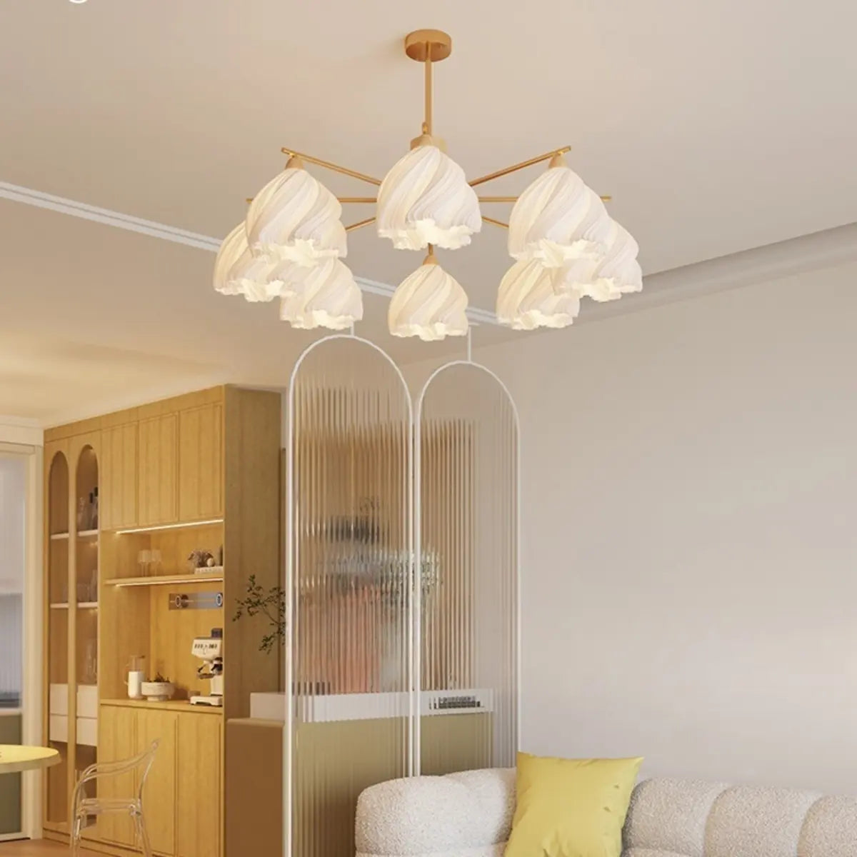 This Nordic-style chandelier adopts simple and stylish geometric lines, exuding a modern and unique charm. Its elegant streamlined design and soft lampshade create a warm and comfortable atmosphere, bringing a unique decorative embellishment to the space.
