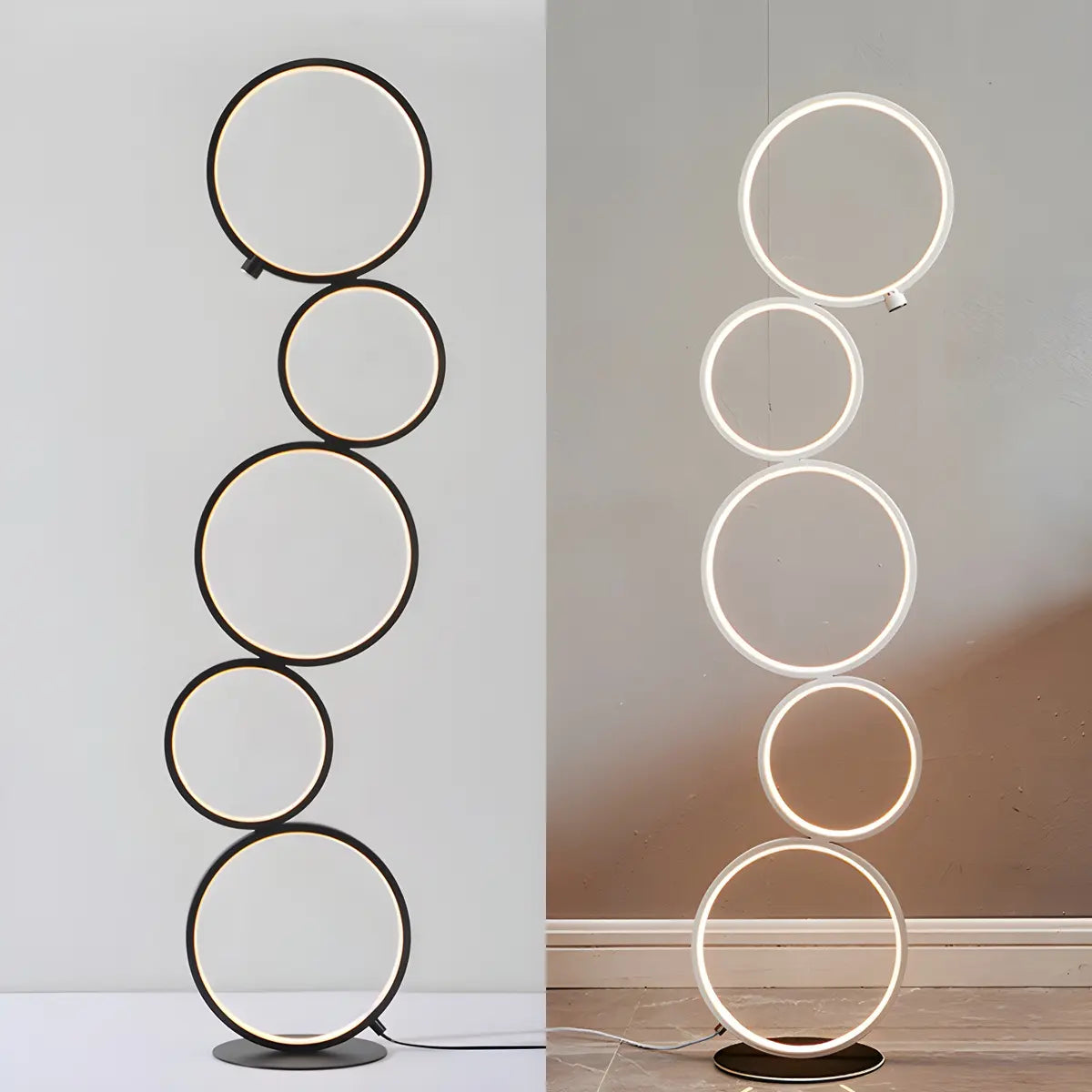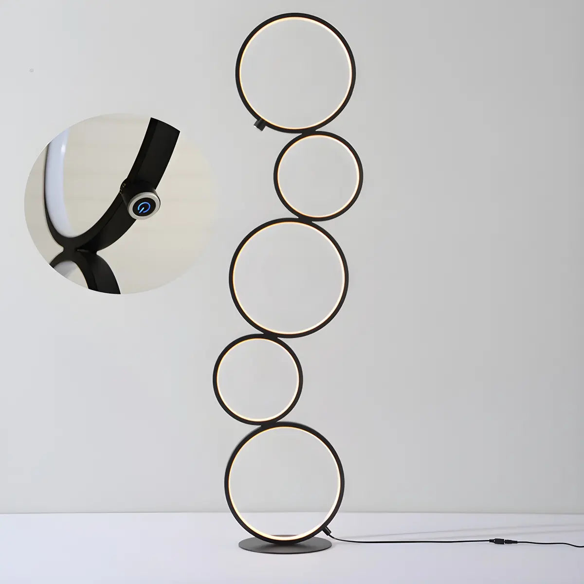 Featuring a creative multi-circle design, this modern floor lamp is made of metal and silicone, showcasing a modern and minimalist style while providing a high-quality lighting experience.