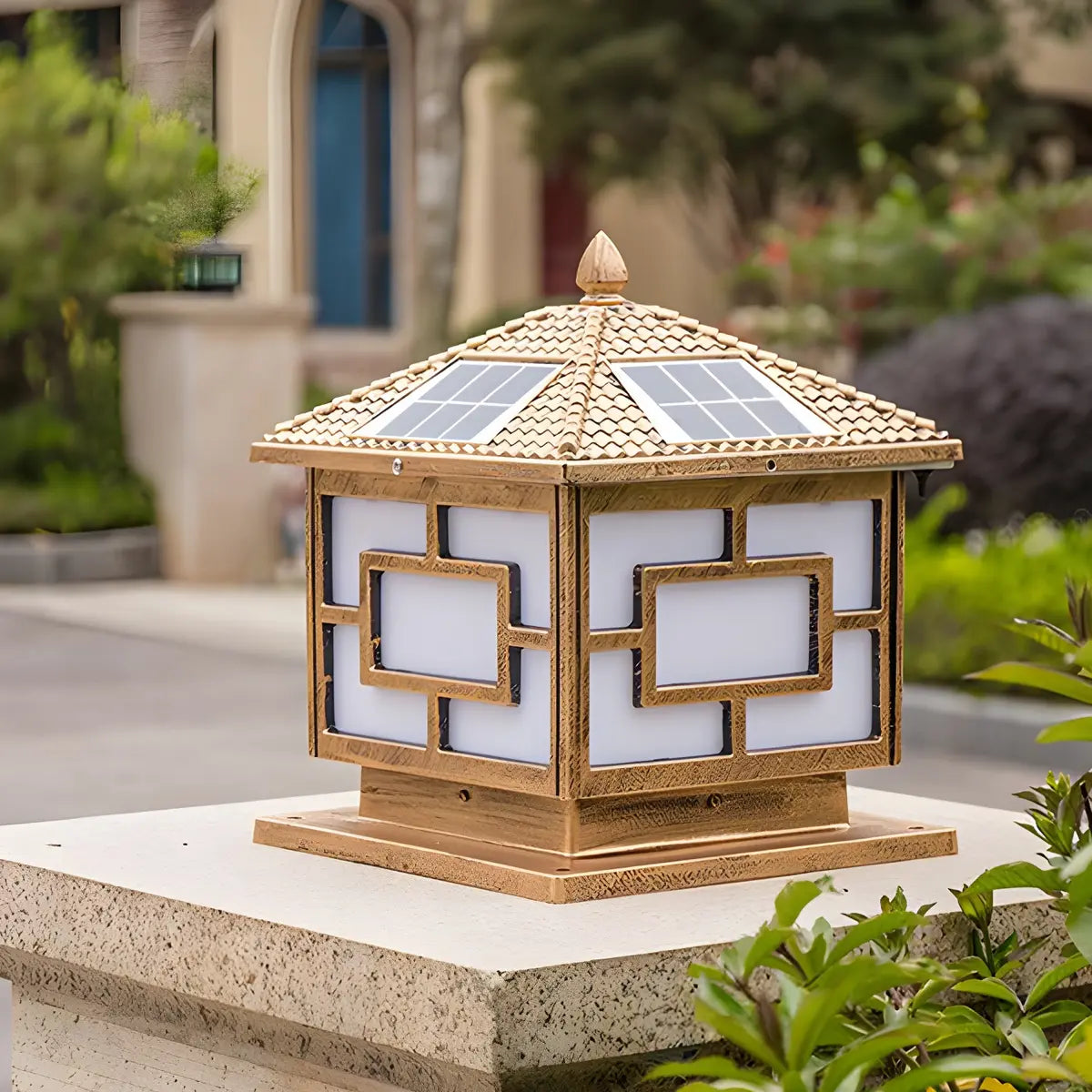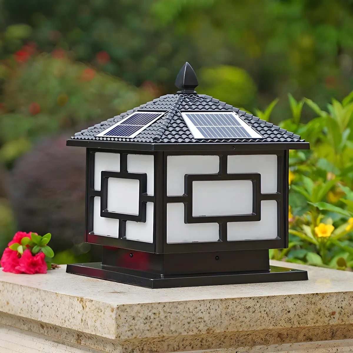 ZOWALA - Oriental Black Pavilion Solar Outdoor Post Light