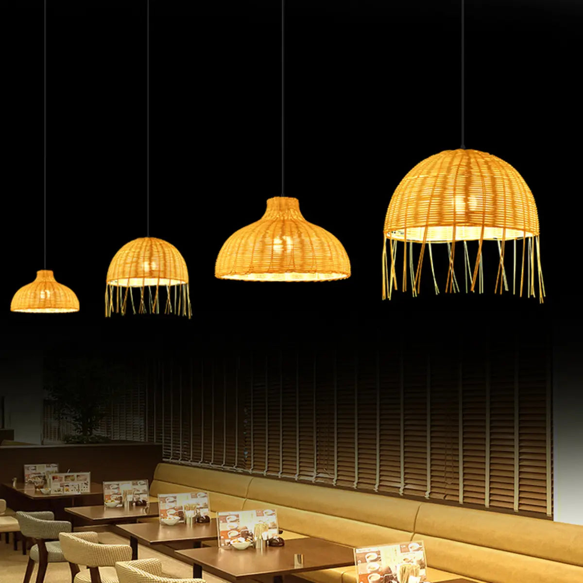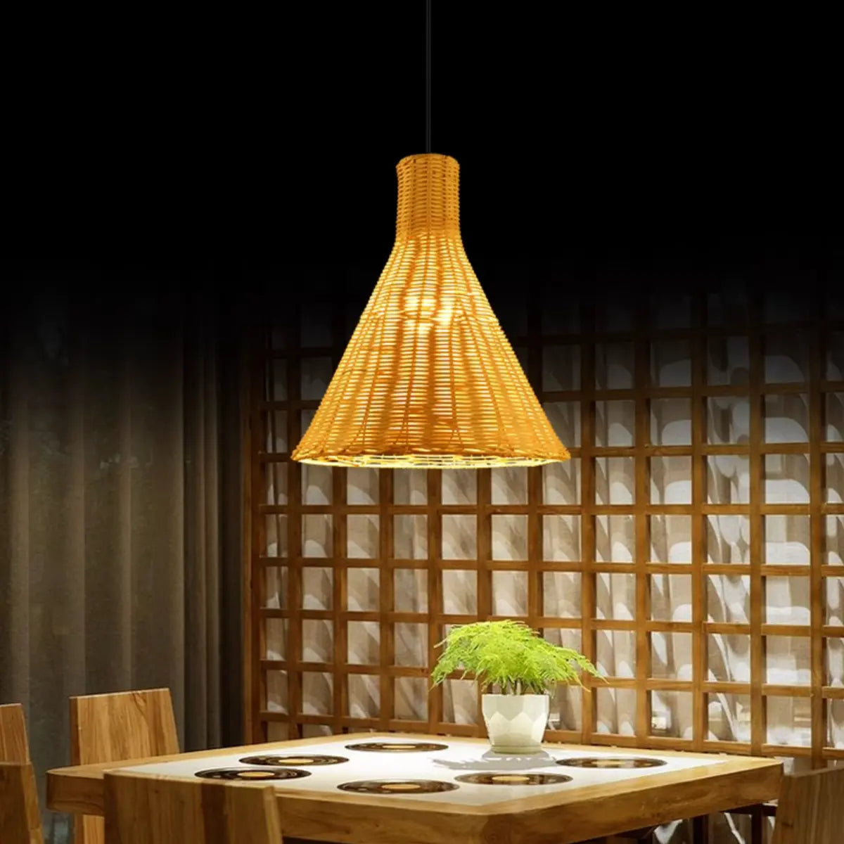 ZOWALA - Wood Color Oriental Rattan Cone Pendant Light