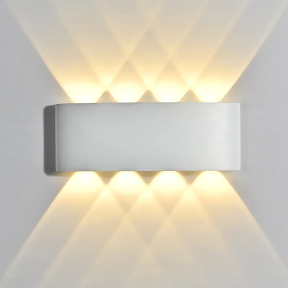 This modern outdoor wall lamp is made of metal and features a geometric design style. It is suitable for installation in outdoor spaces such as corridors and balconies. It not only enhances the beauty of the environment but also provides efficient lighting.
