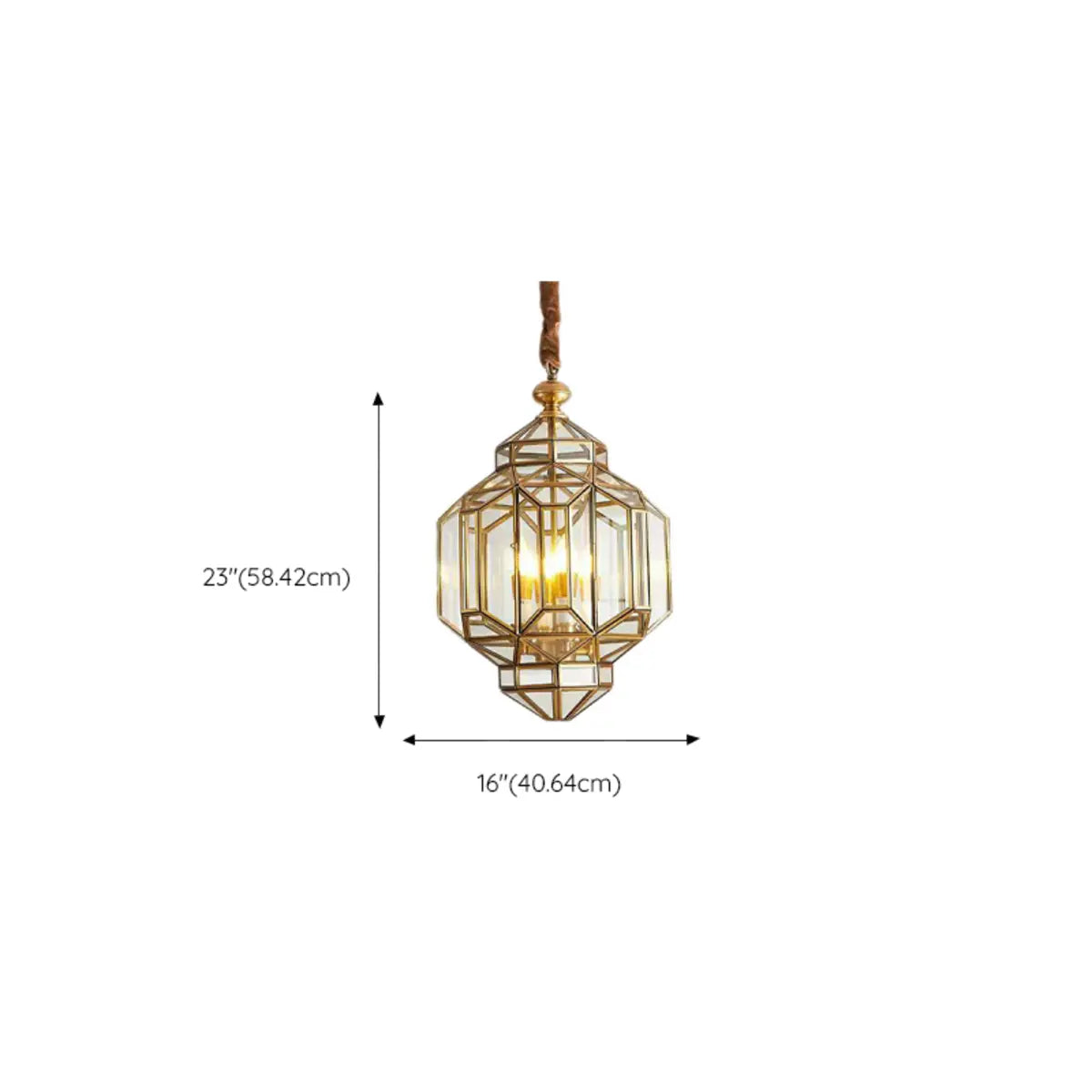 ZOWALA - Outdoor Gold Lantern Clear Glass Chain Chandelier