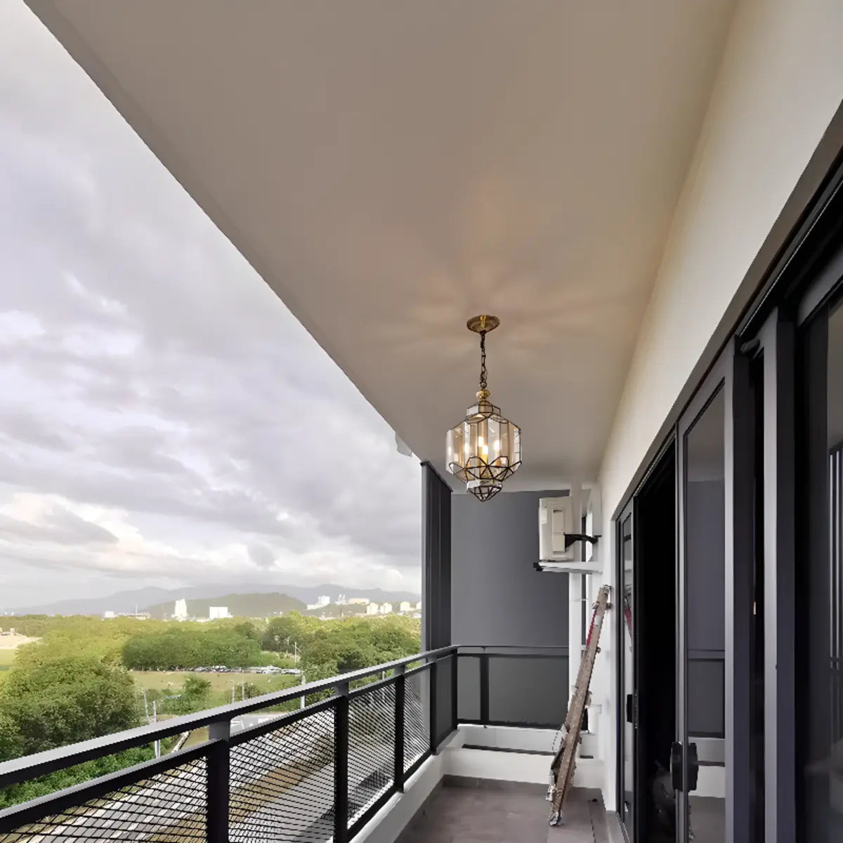 This outdoor glass gold lantern adjustable chain chandelier will add a touch of glamour to your outdoor setting with its unique gold and glass design. Its simple yet elegant design makes it an ideal lighting solution for your patio or garden.
