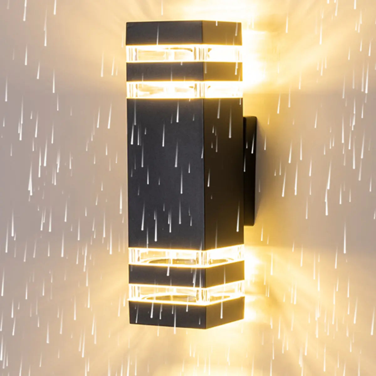 ZOWALA - Outdoor Rectangular Clear Glass Black Up Down Wall Light