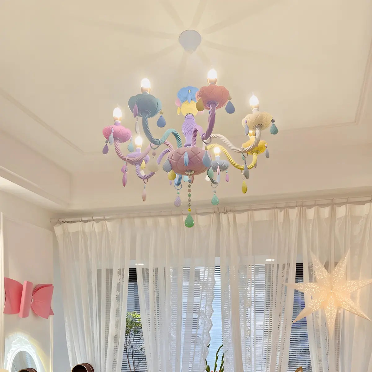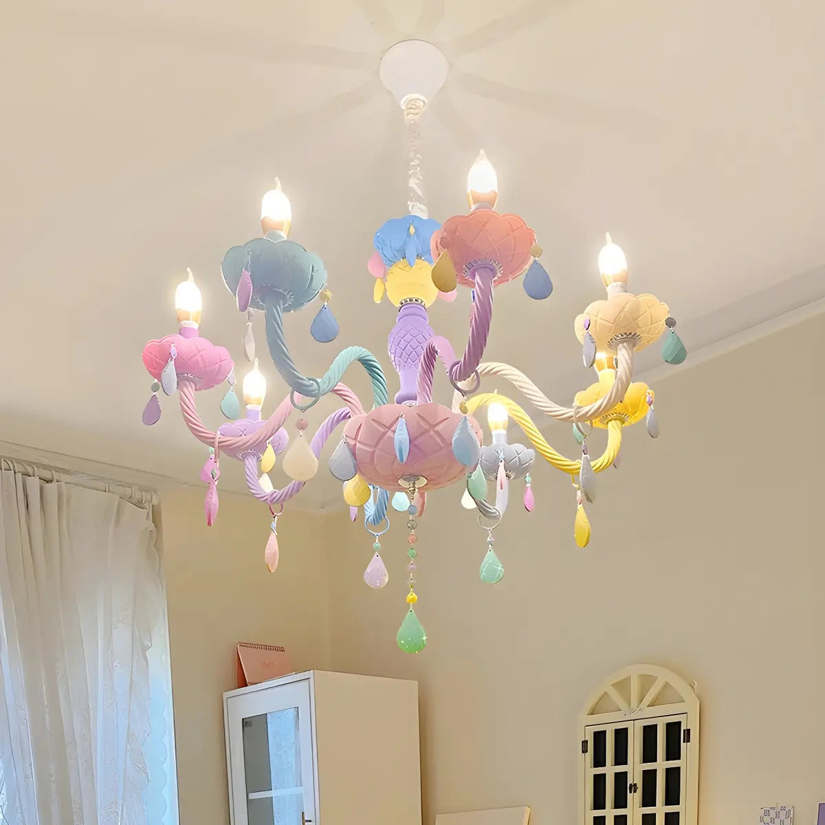 ZOWALA - Kids Room Pastel Carved Candelabra Up Chandelier
