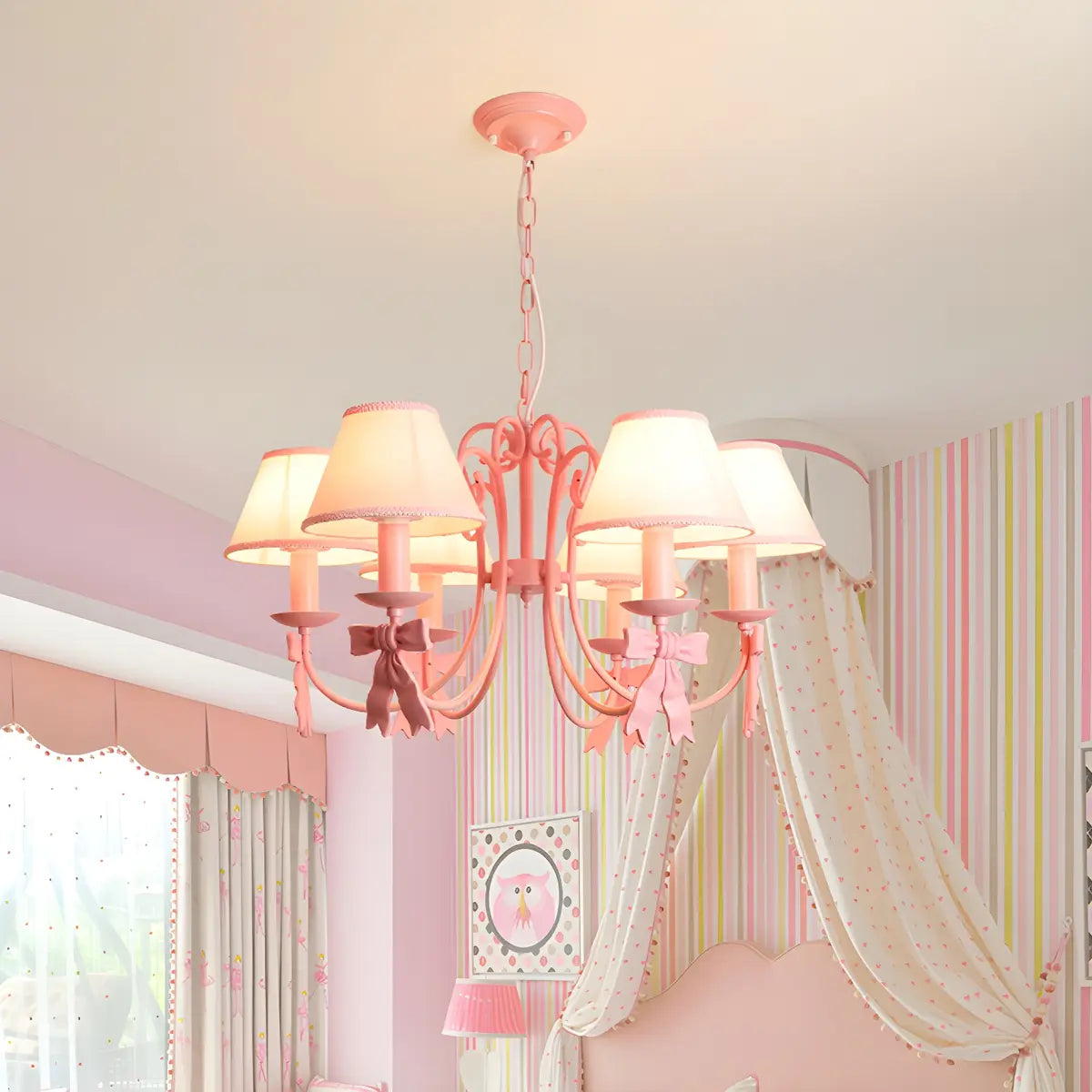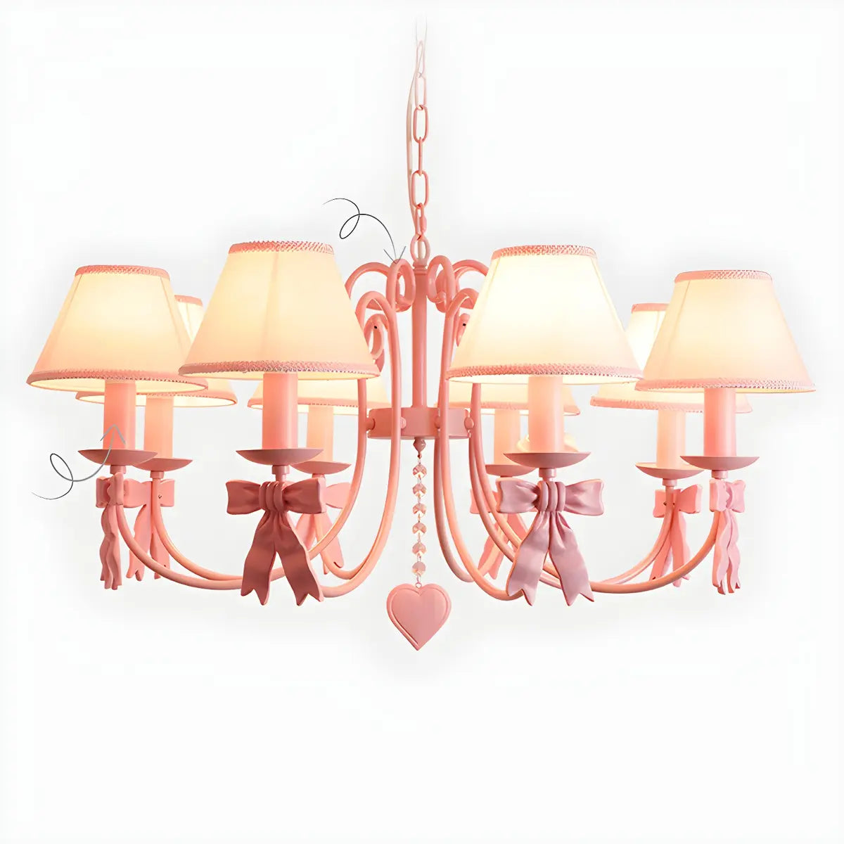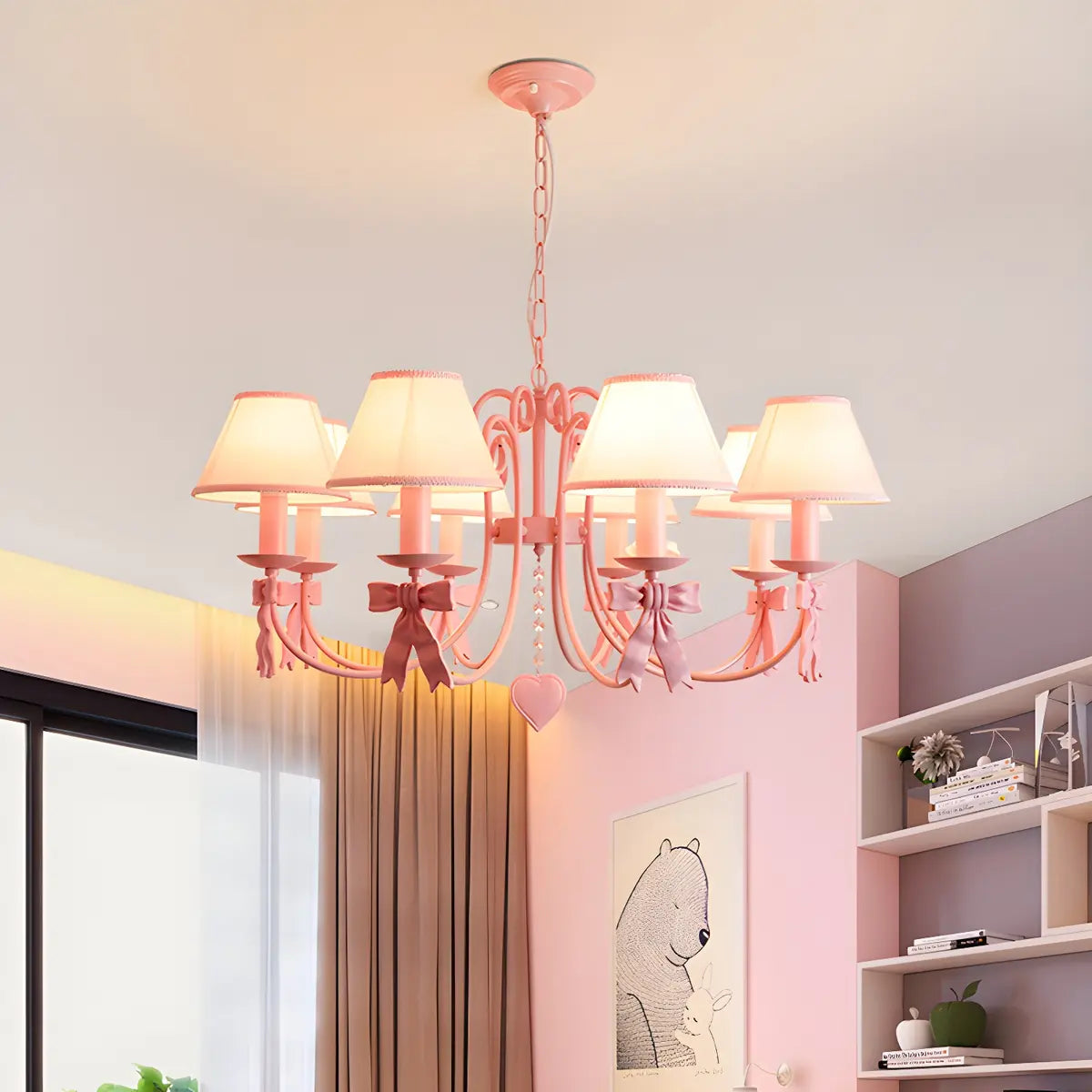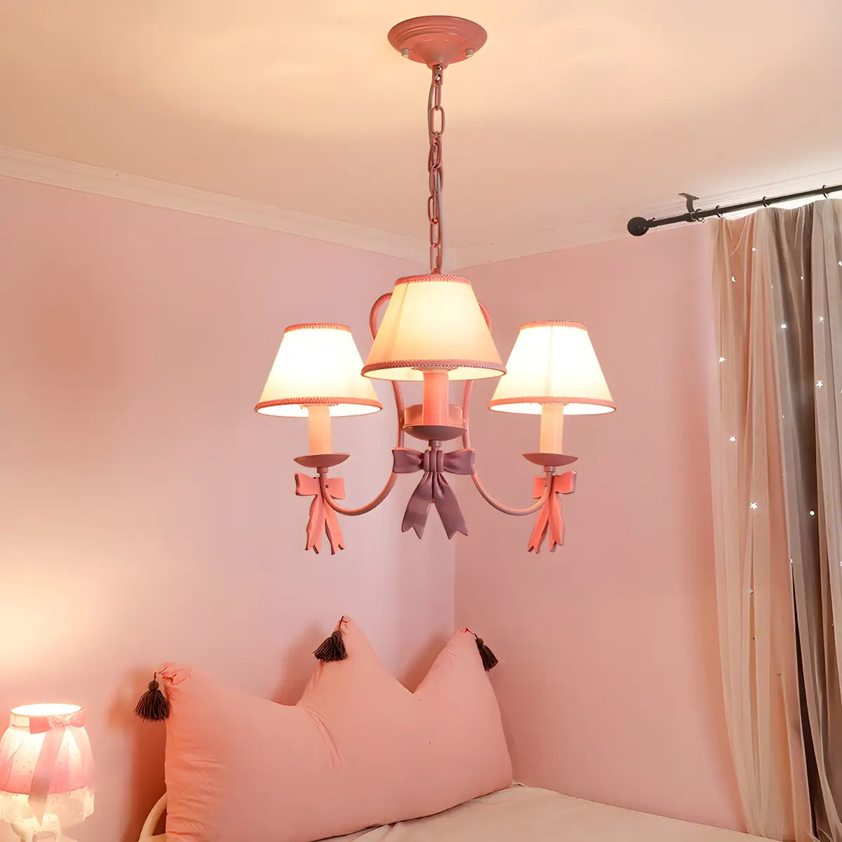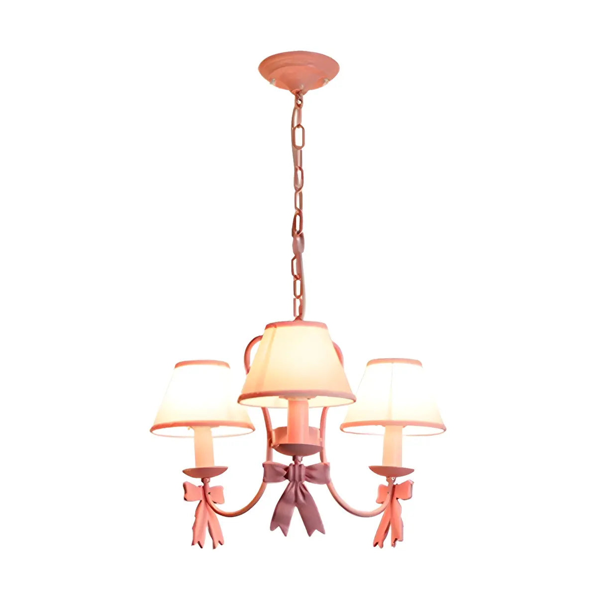 ZOWALA - Kids Pink Bowknot Metal Fabric Chandelier