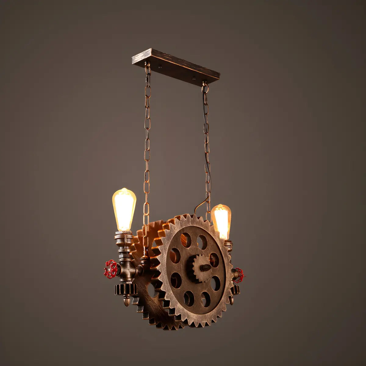 ZOWALA - Bronze Pipe Gear 2-Light Edison Bulb Chandelier