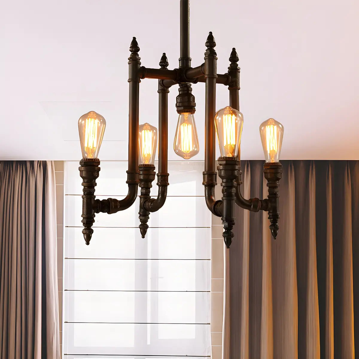 ZOWALA - Rust Antiqued Metal Radial Pipe Chandelier