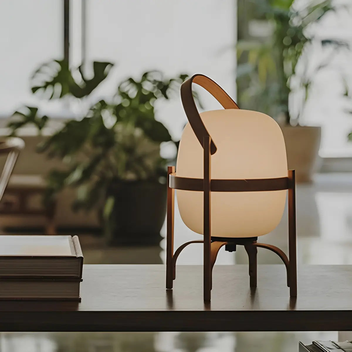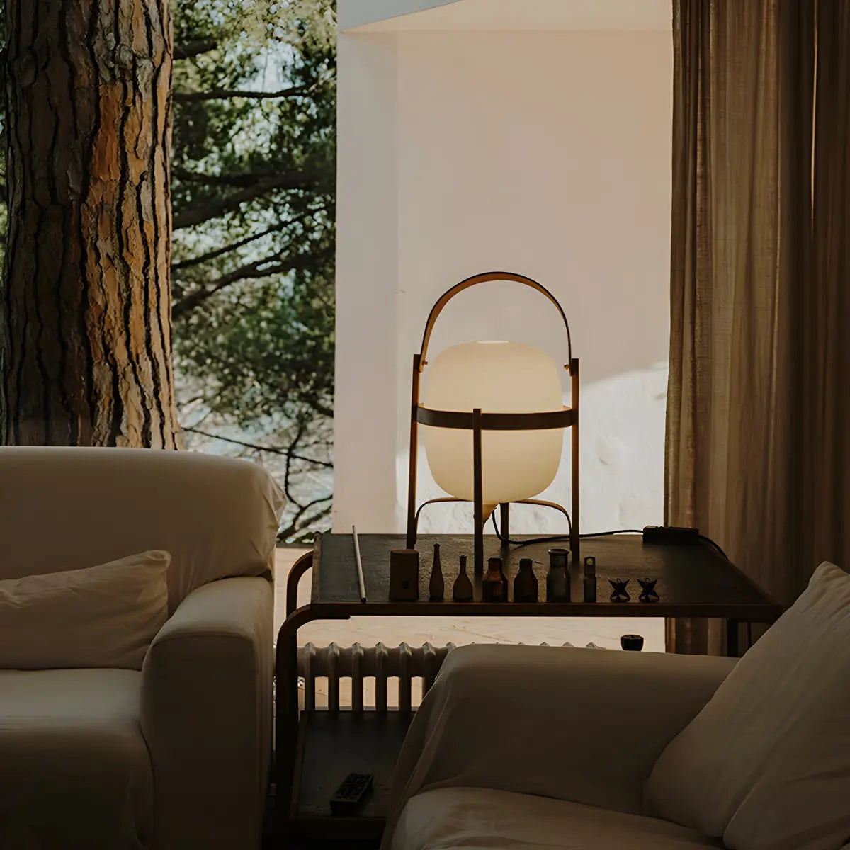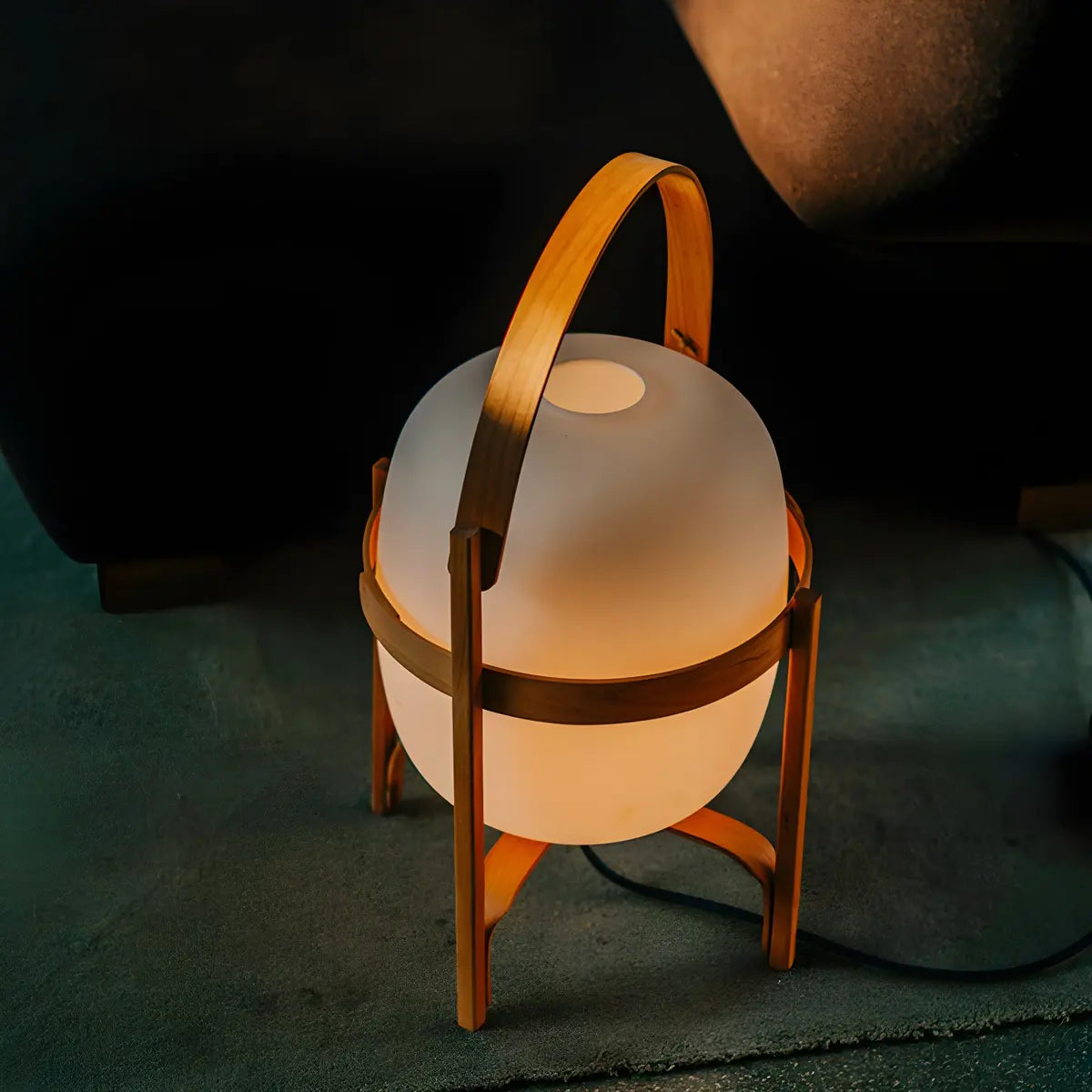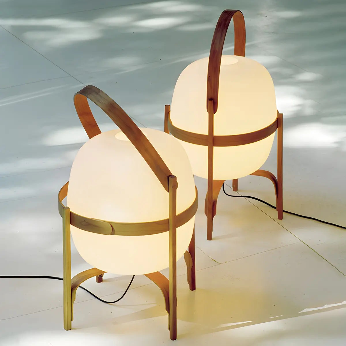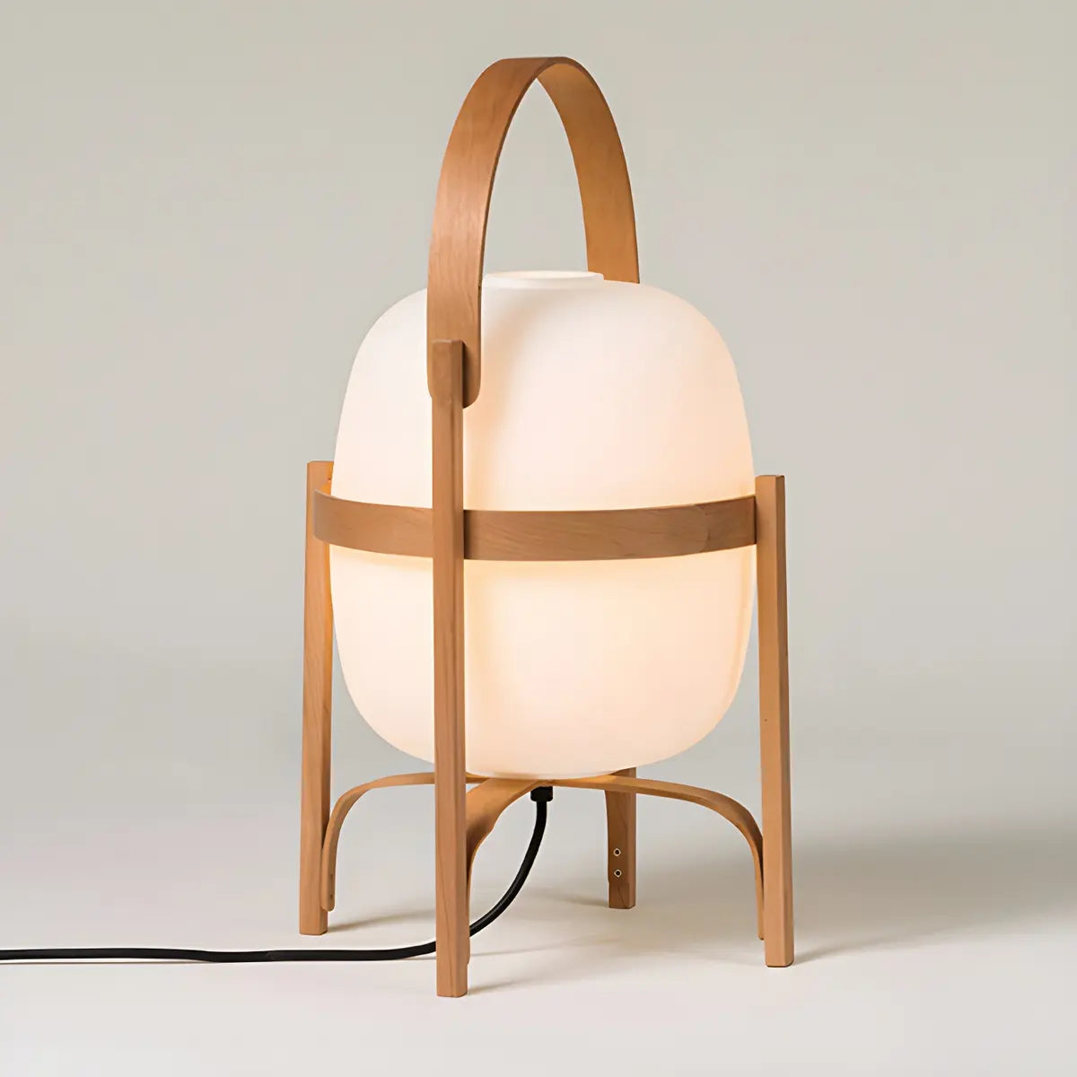 ZOWALA - Portable White Glass Wooden Cestita Floor Lamp