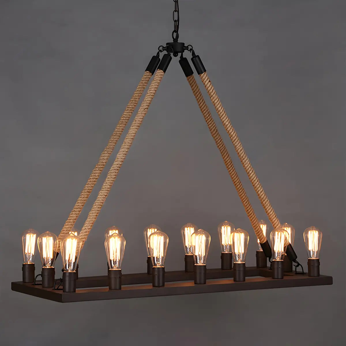 ZOWALA - Farmhouse 16-Light Black Rope Rectangle Chandelier