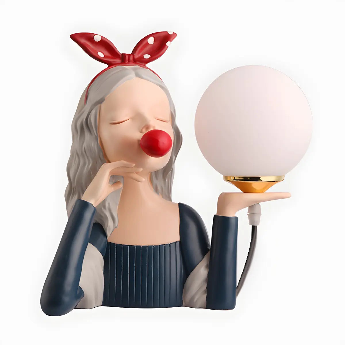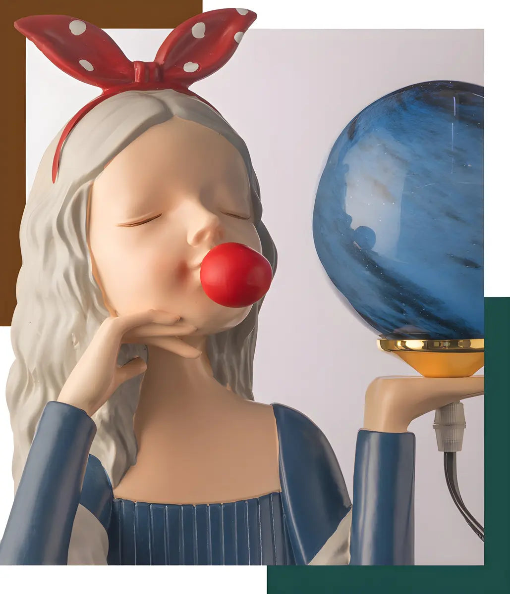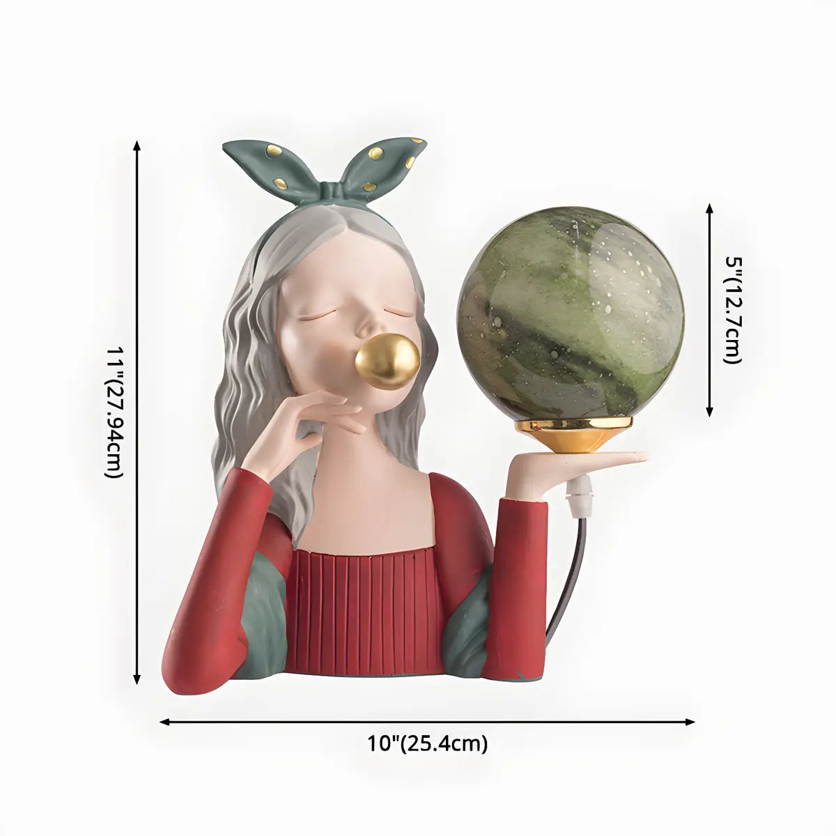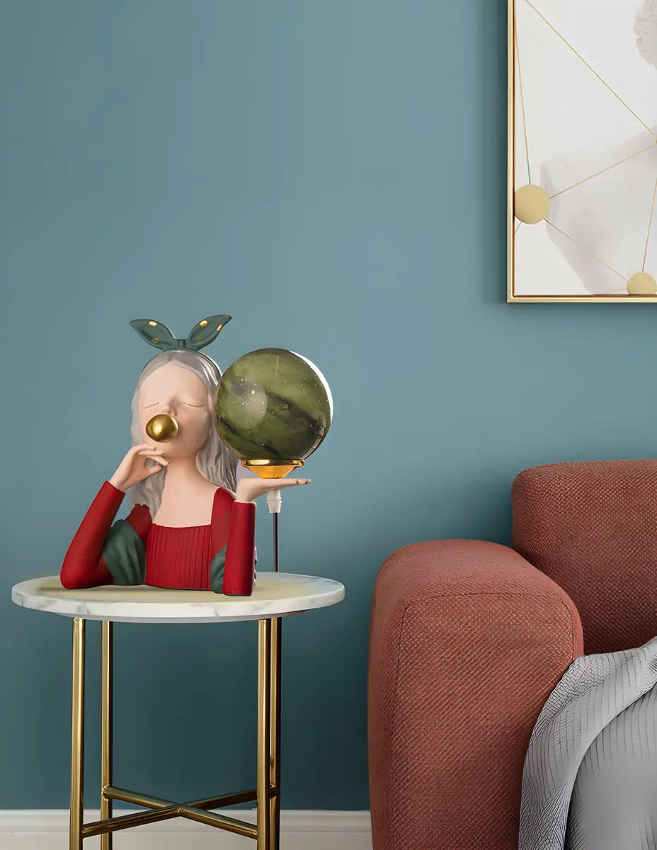 ZOWALA - Resin Girl Statue Spherical Glass Table Lamp