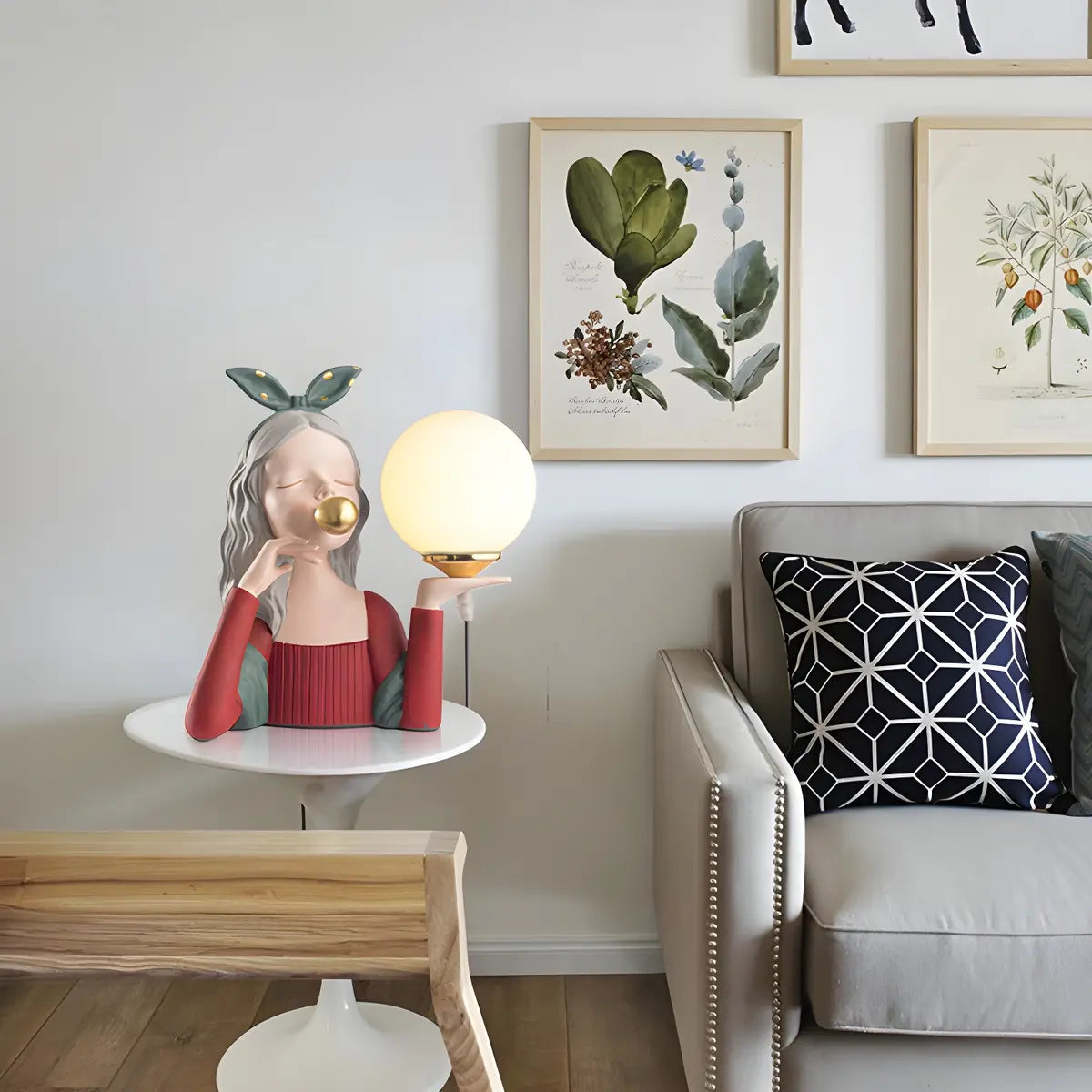 This table lamp adopts a modern design style, combined with a unique girl statue shape, which is quite artistic. It is suitable for placing in the living room or bedroom to enhance the decorative effect of the space.
