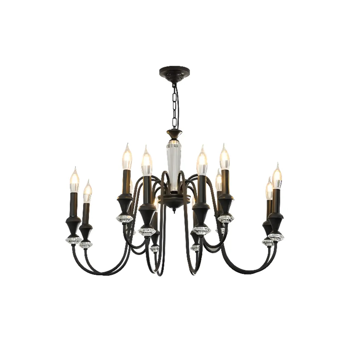 ZOWALA - Retro Crystal Black Arm Candle Chandelier