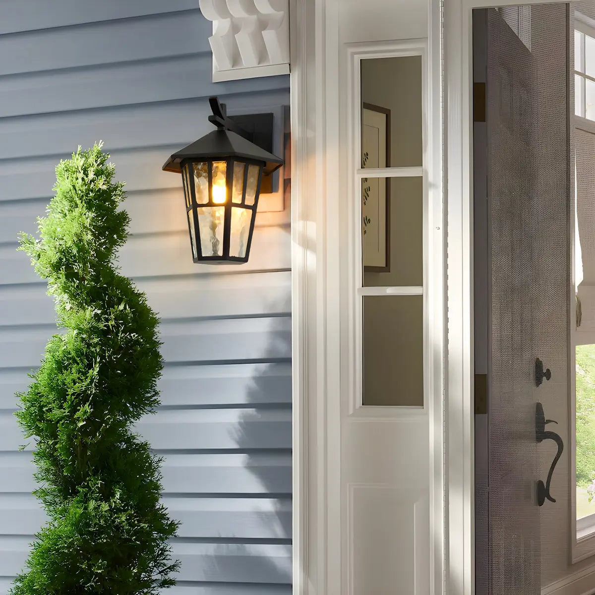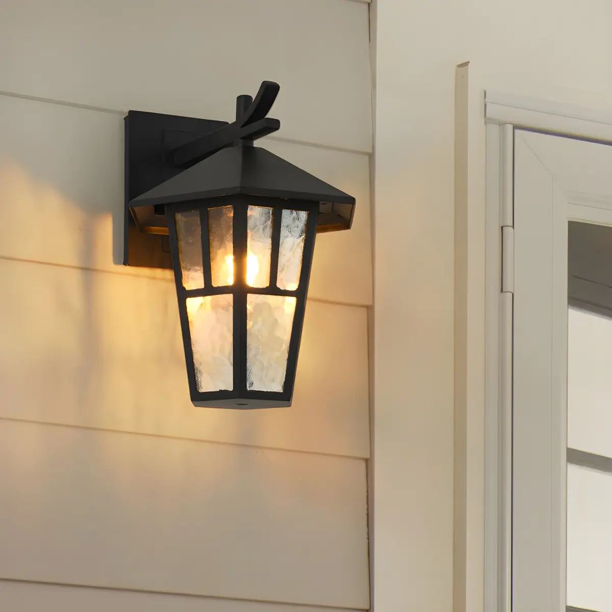 This modern geometric black glass wall lamp is unique and will add an elegant atmosphere to your outdoor area. The exquisite design with water ripple glass makes the light even and soft, suitable for any decoration style.