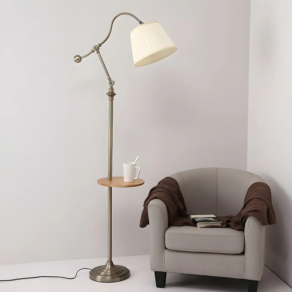 ZOWALA - Retro Bronze Swing Arm Fabric Floor Lamp with Shelf