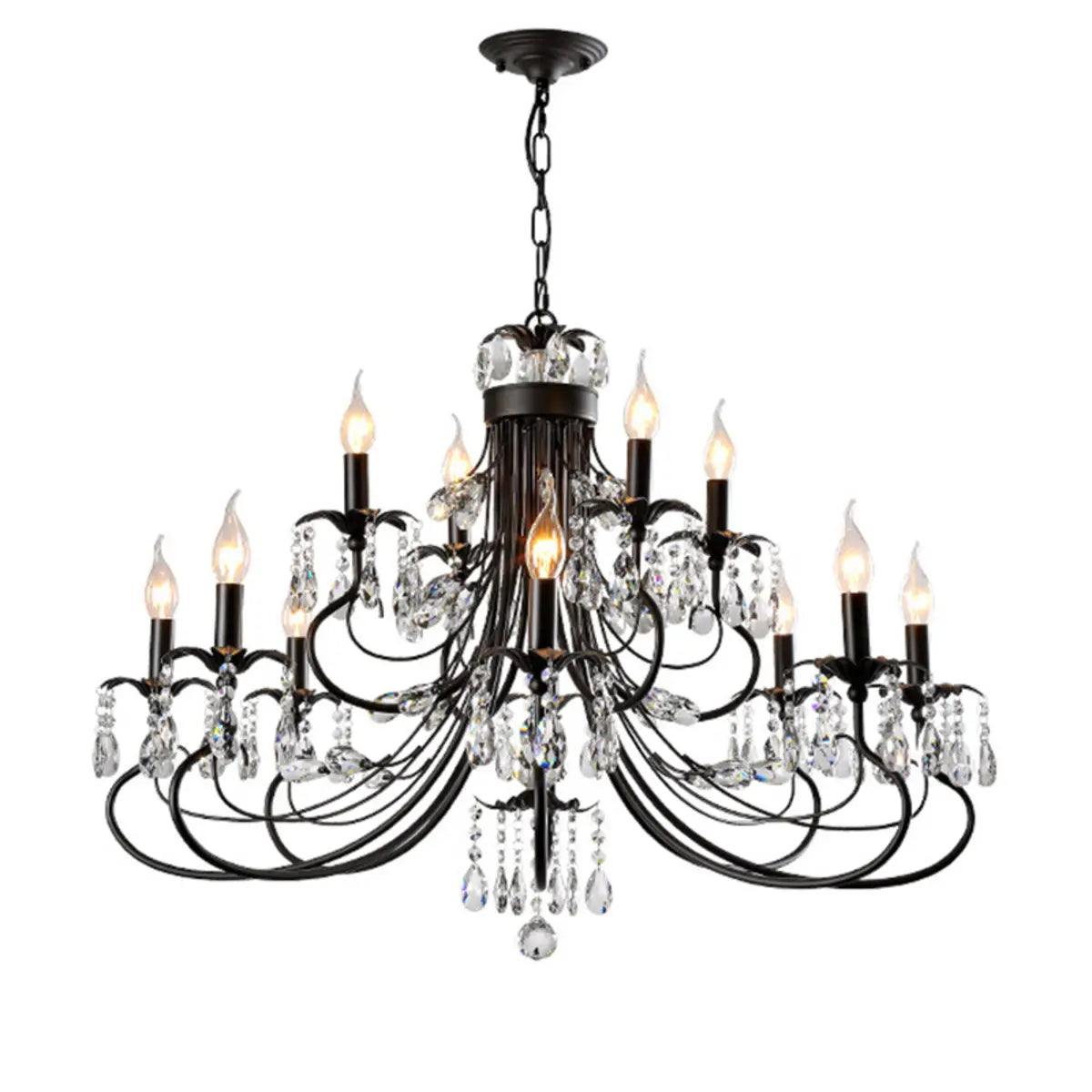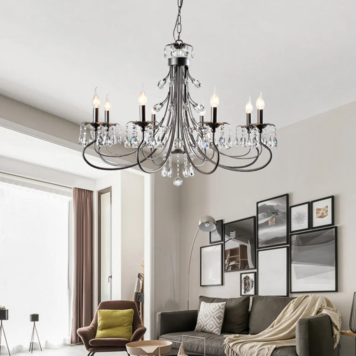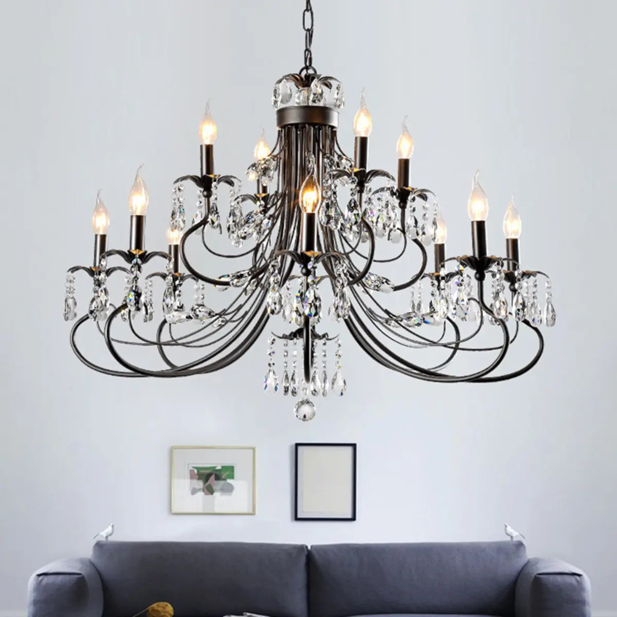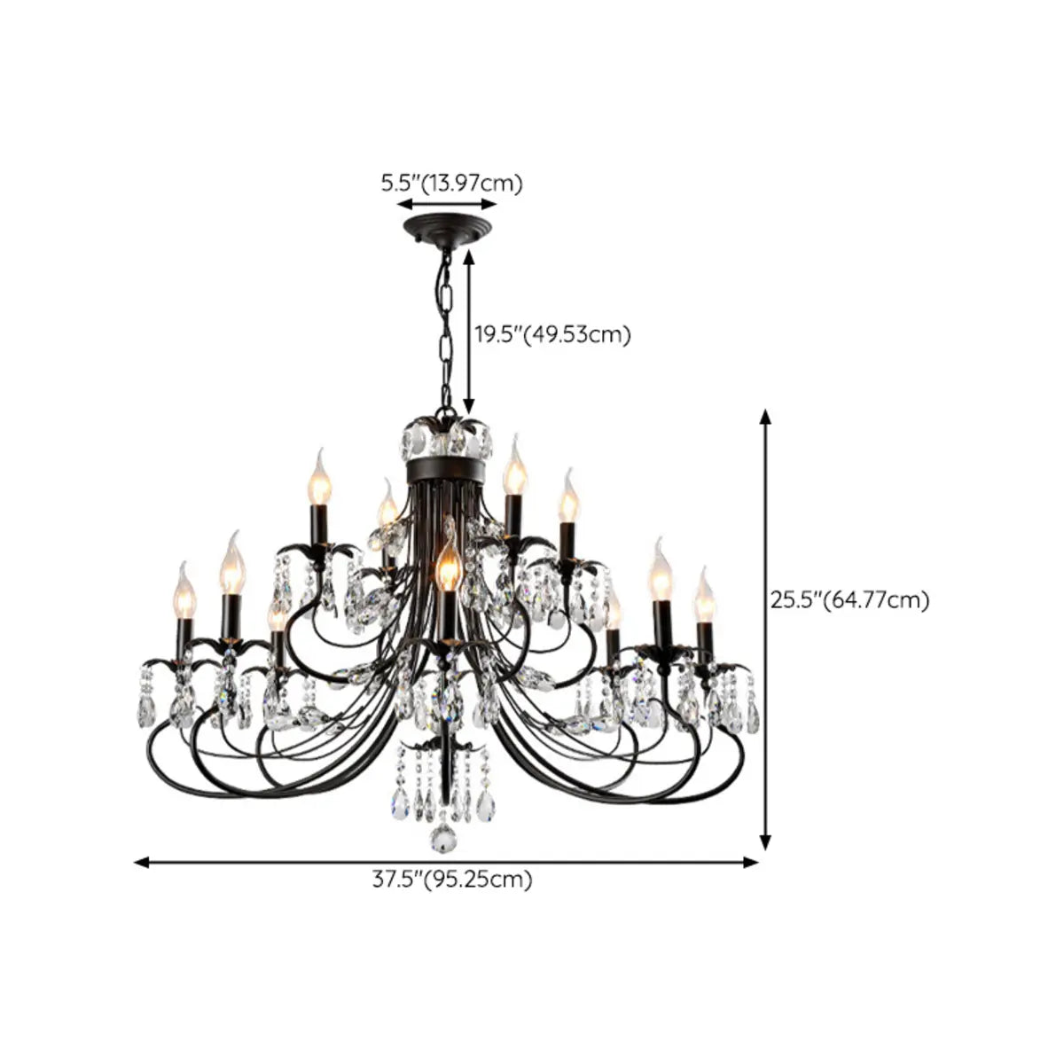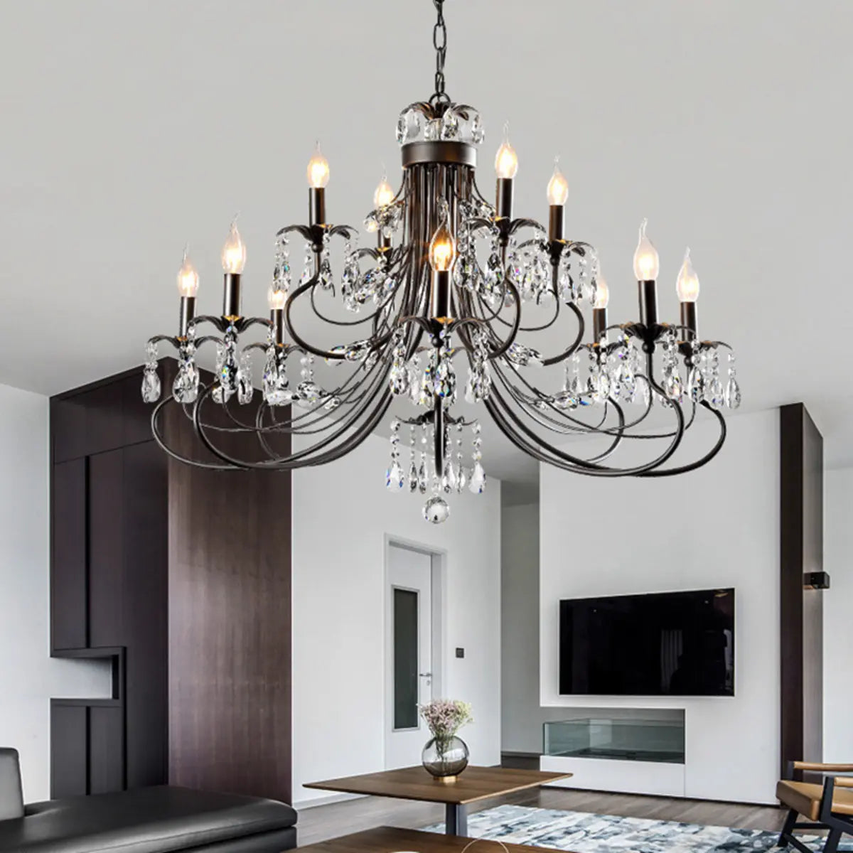 ZOWALA - Retro Black Crystal Candelabra Large Chandelier