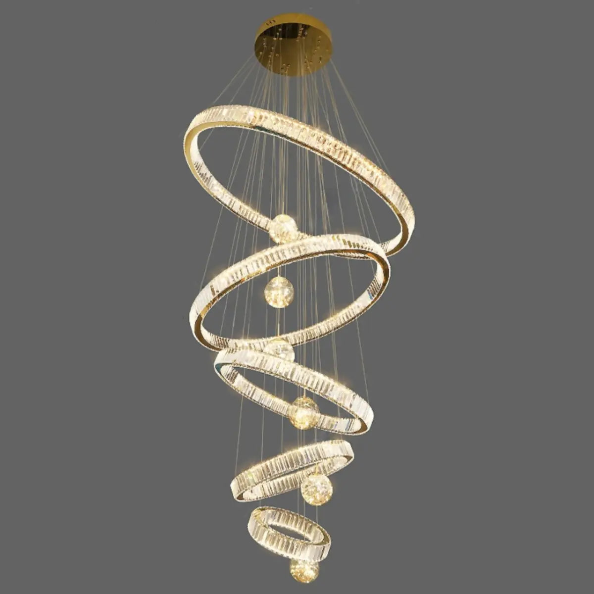 ZOWALA - Remote Tiered Ring Ball Crystal Chandelier