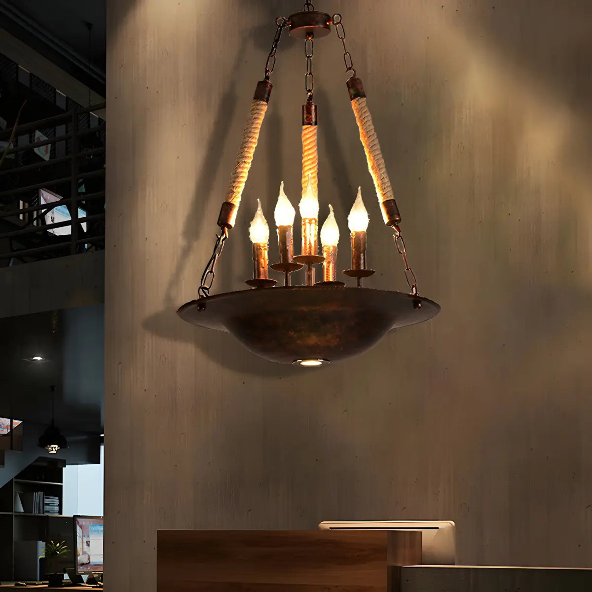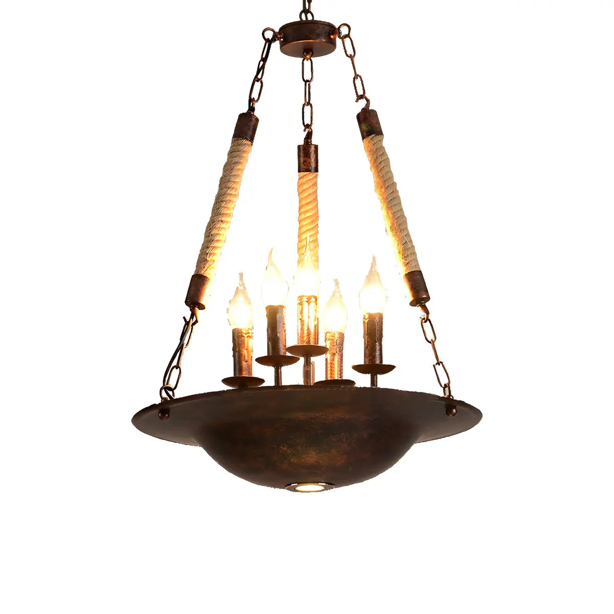 ZOWALA - Rope Farmhouse Rust Metal Bowl 5-Light Chandelier