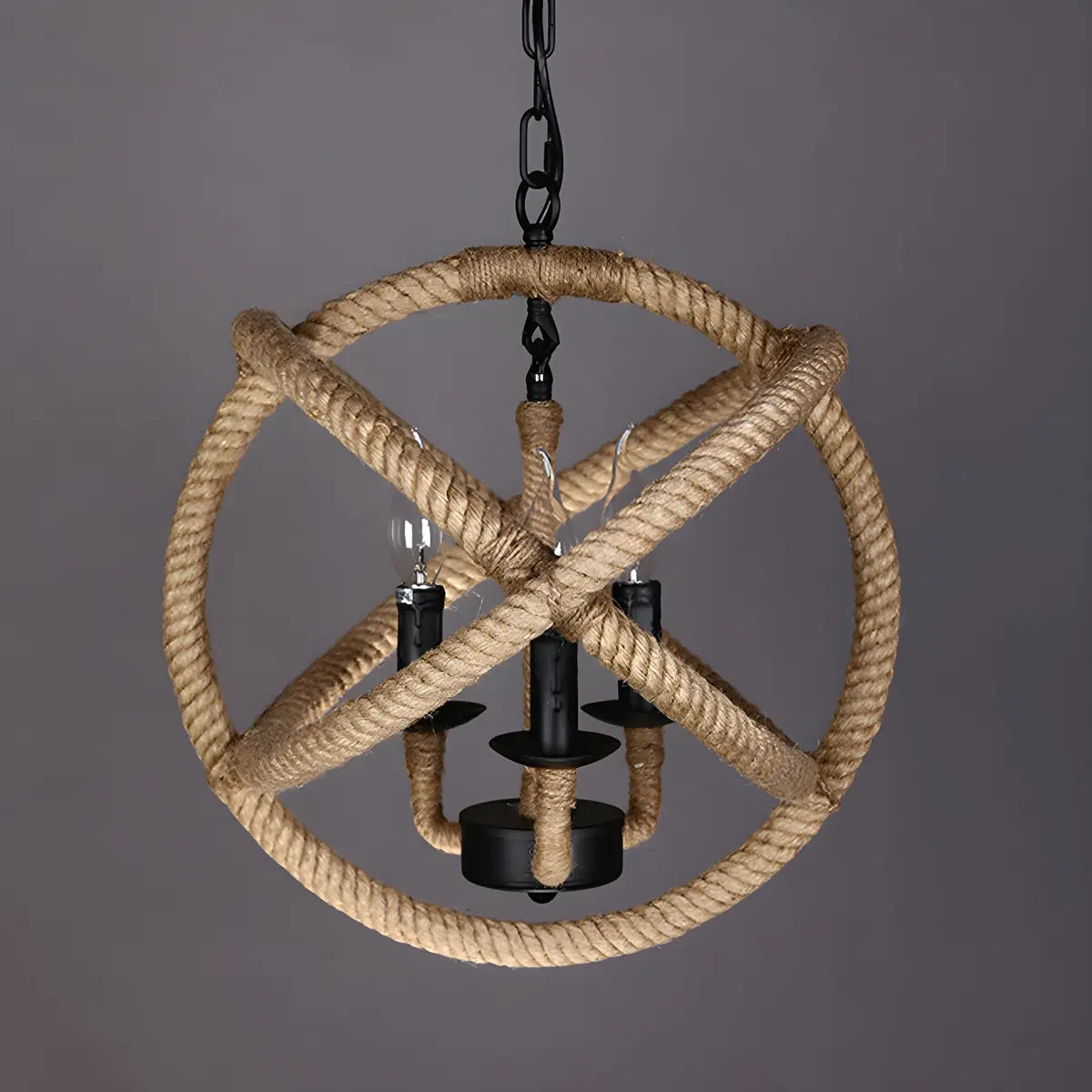 ZOWALA - Farmhouse Rope Orb 3-Light Candle Chandelier
