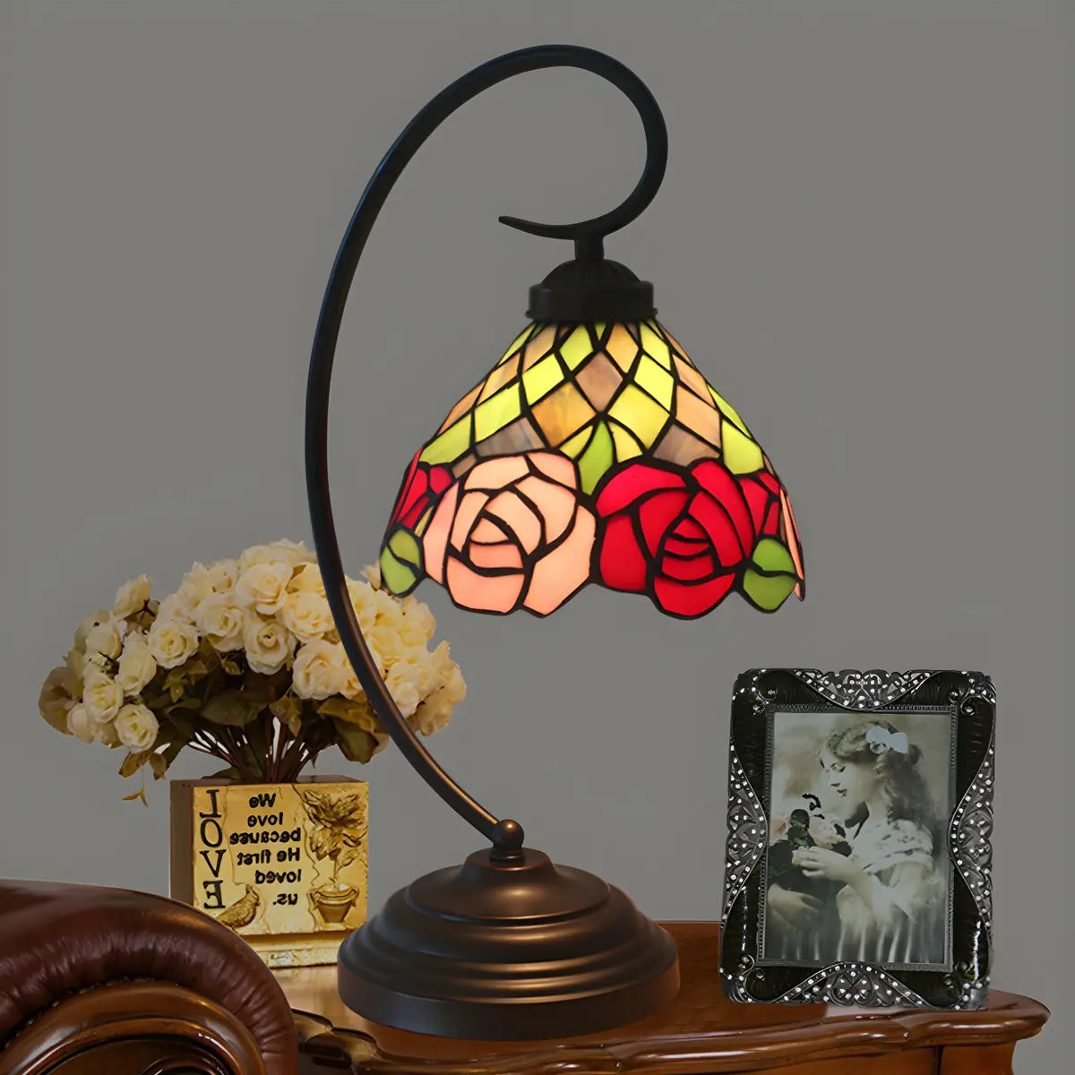 ZOWALA - Rose Stained Glass Curved Arm Desk Lamp