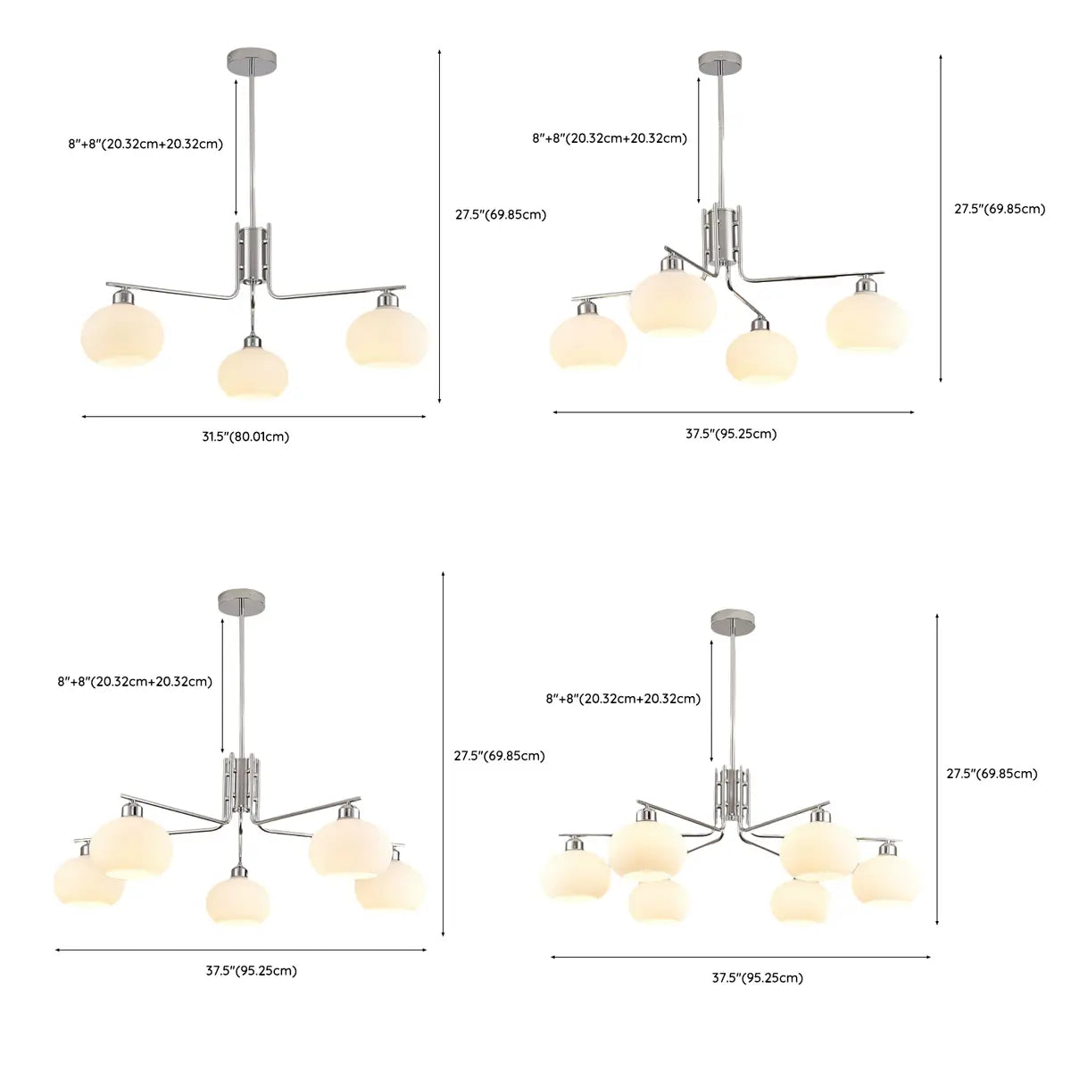 ZOWALA - Modern Silver Branch White Glass Dome Chandelier
