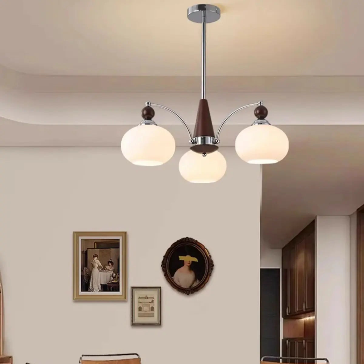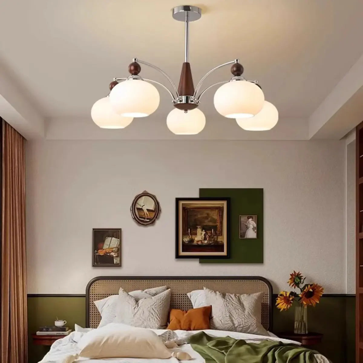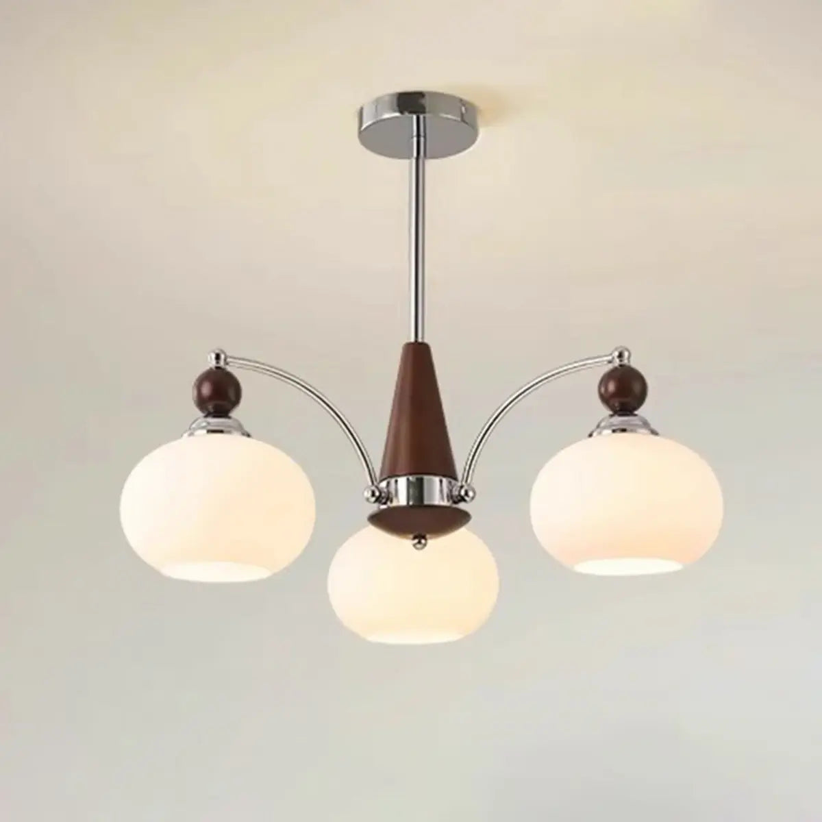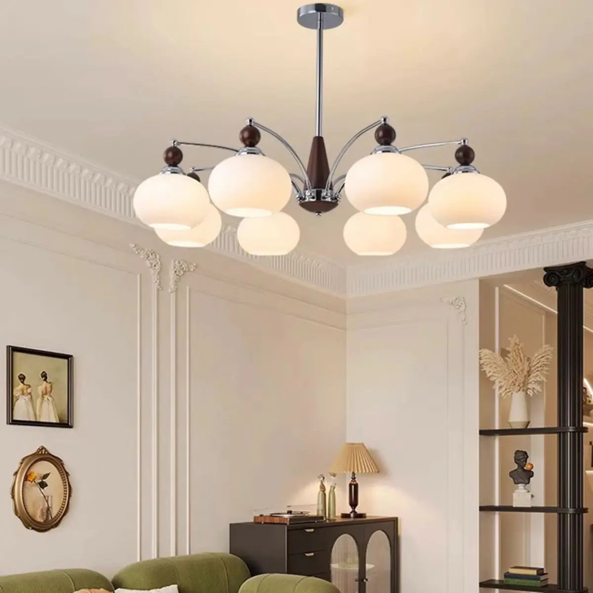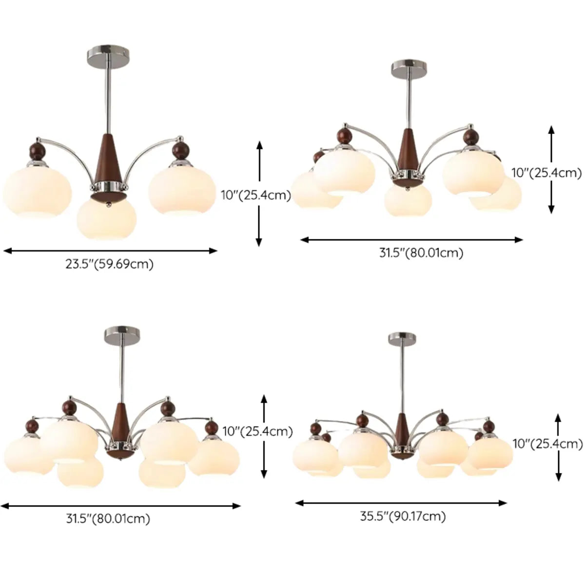 ZOWALA - Sleek Walnut Orb White Dome Chandelier