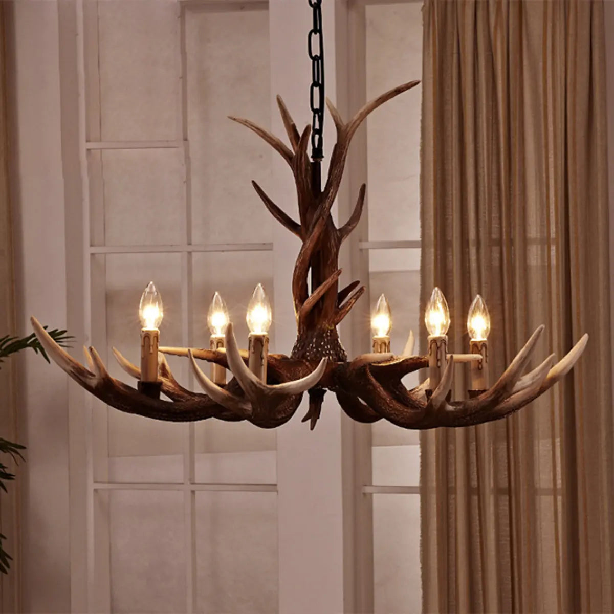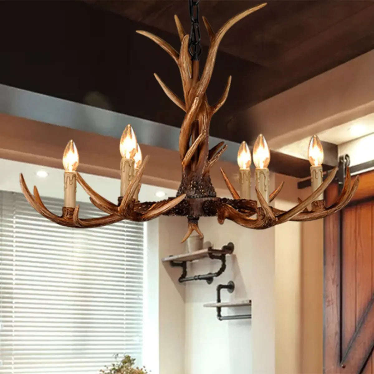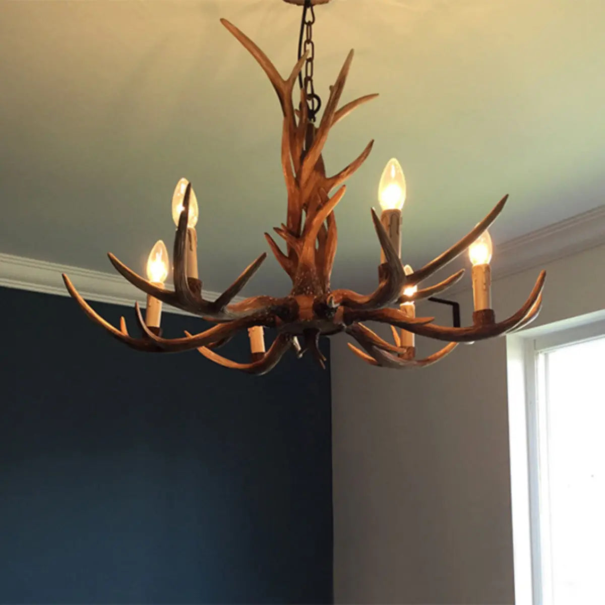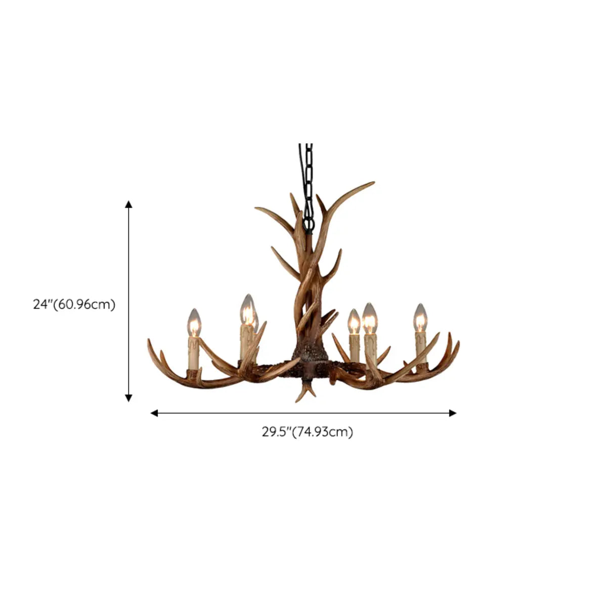 ZOWALA - Rustic Wood Color Antler 8 Lights Chandelier