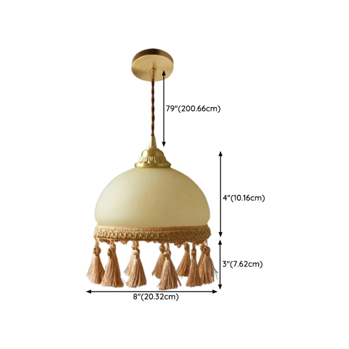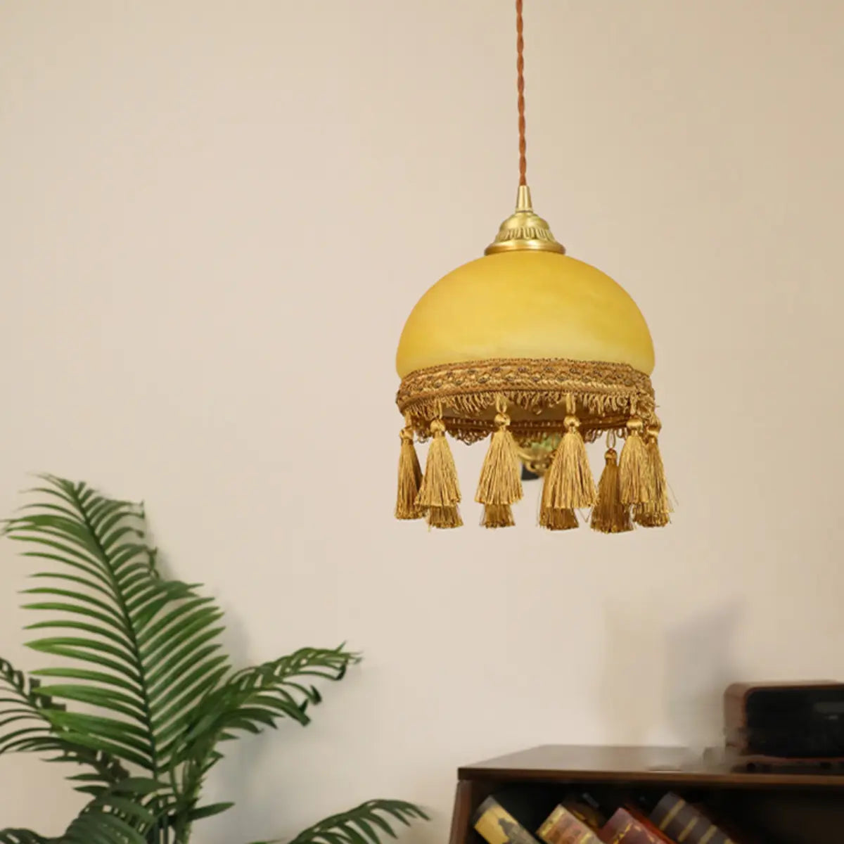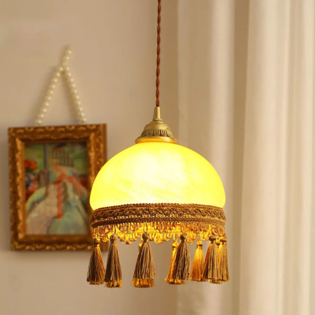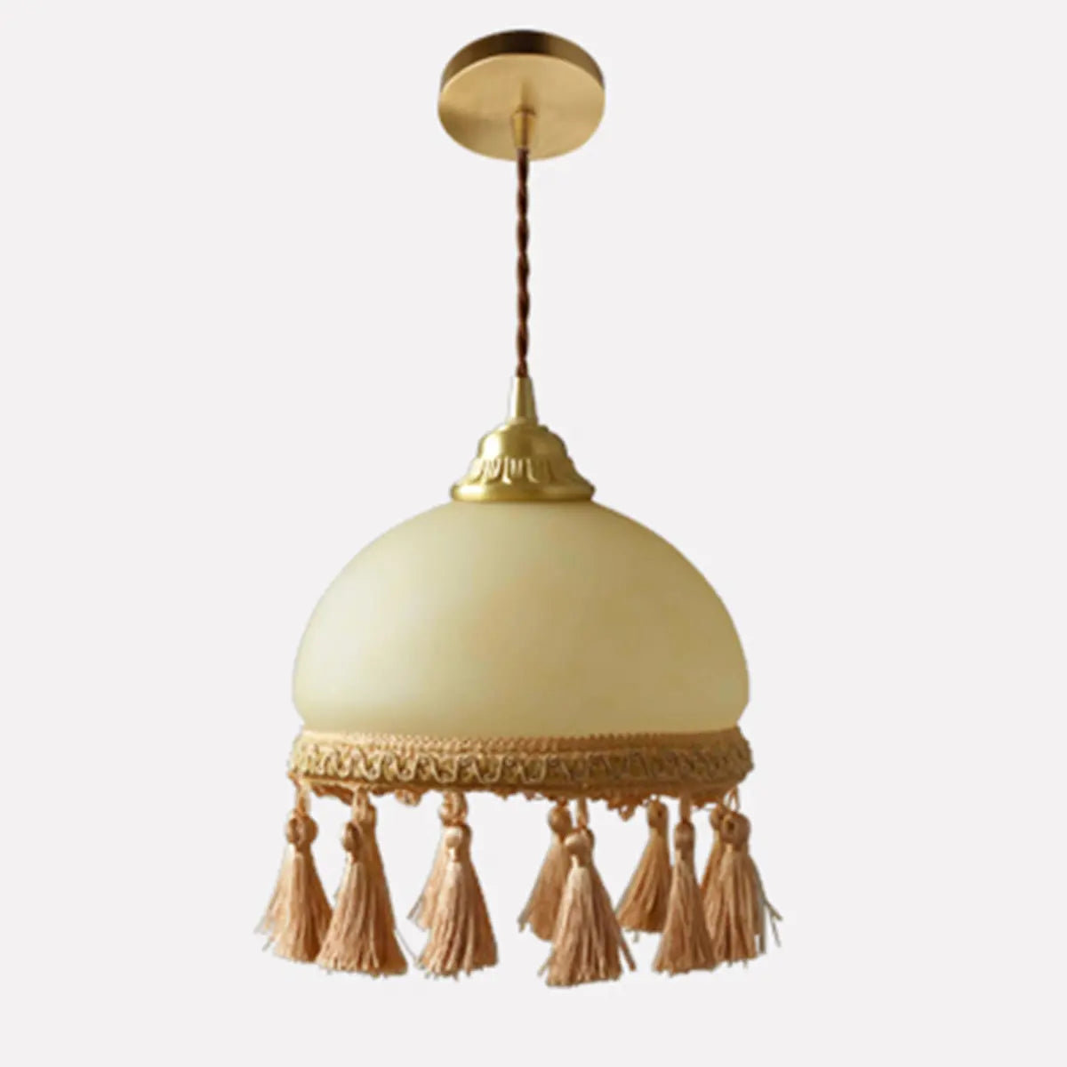 ZOWALA - Rustic Beige Glass Dome Rope Tassel Pendant Light