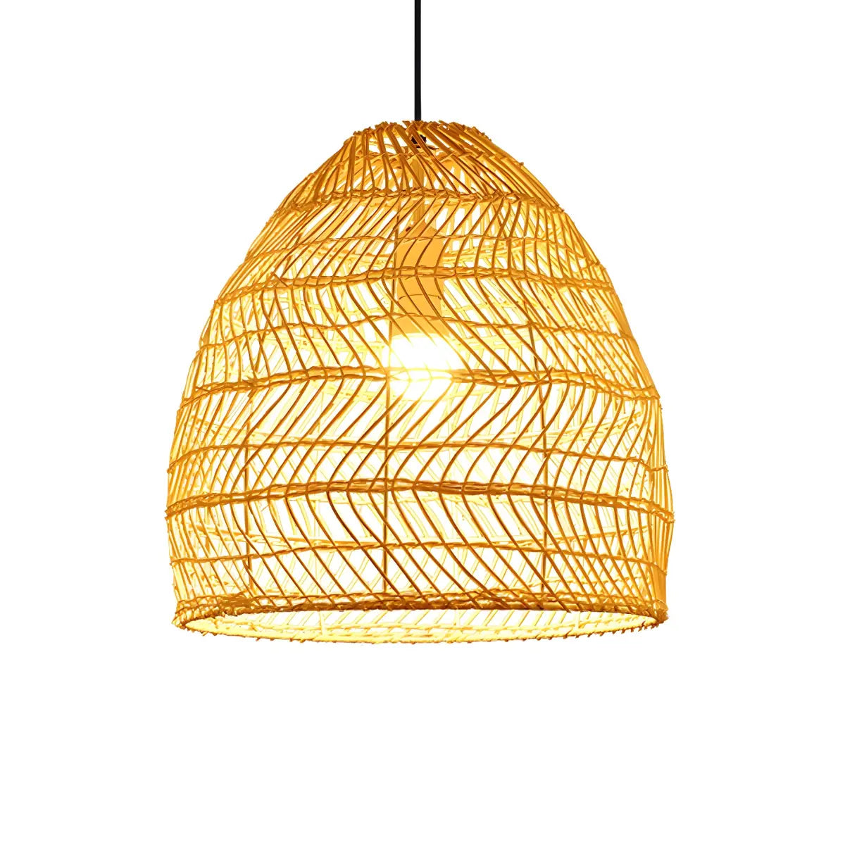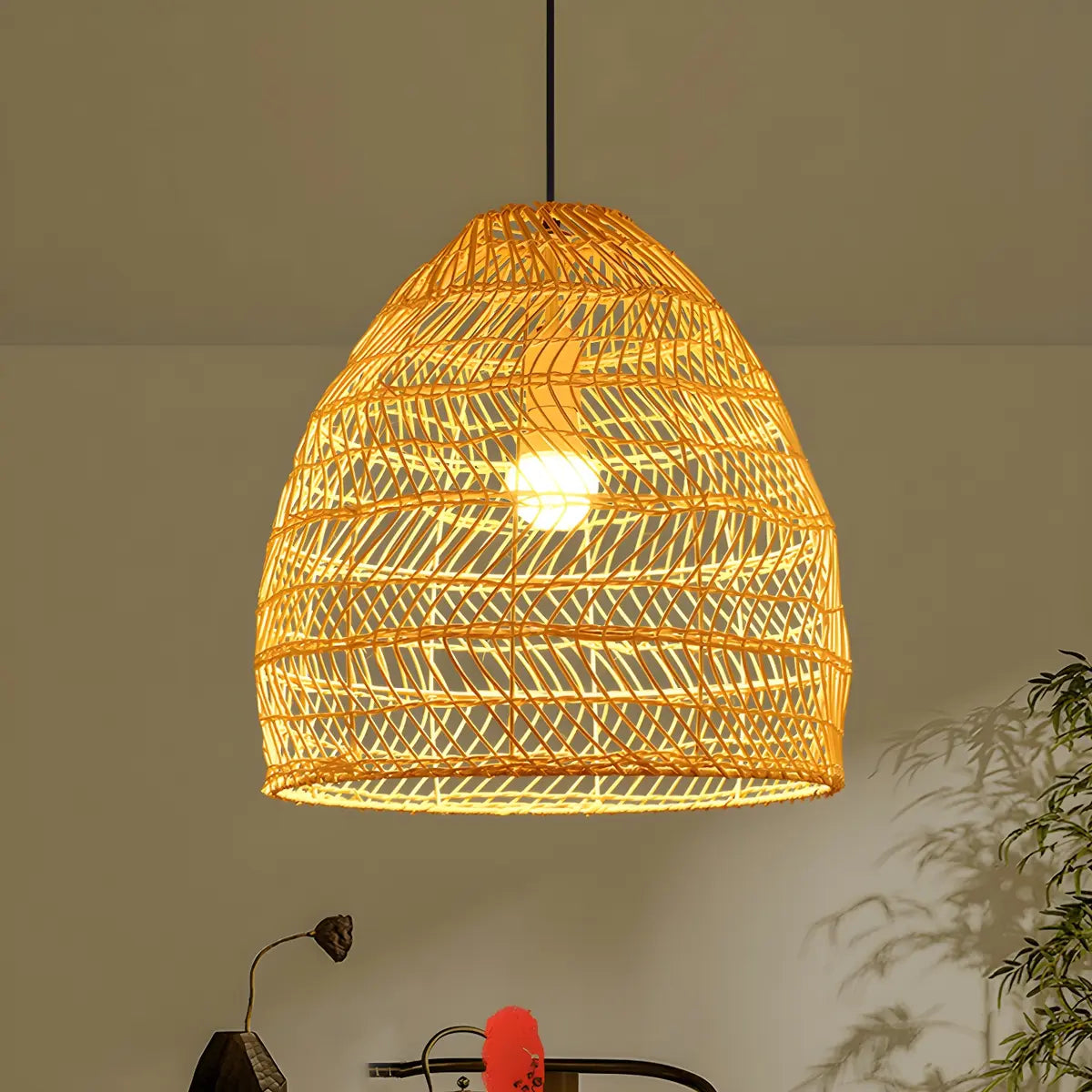ZOWALA - Rustic Beige Rattan Bell Pendant Light