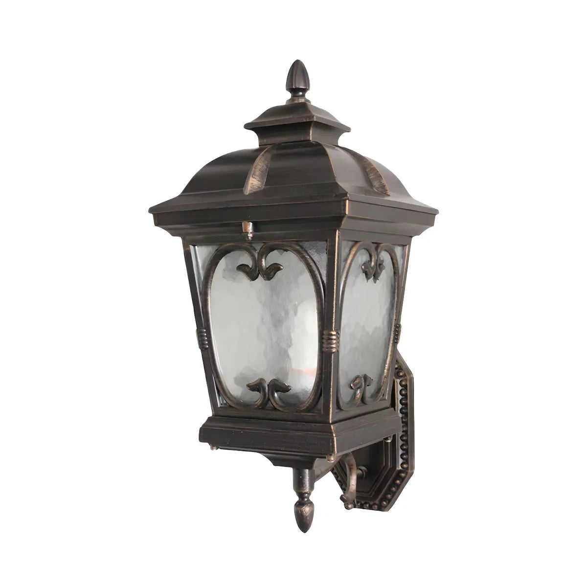 This wall lamp is mainly based on retro style, combining bronze metal and corrugated glass, perfectly enhancing the decorativeness of outdoor space.