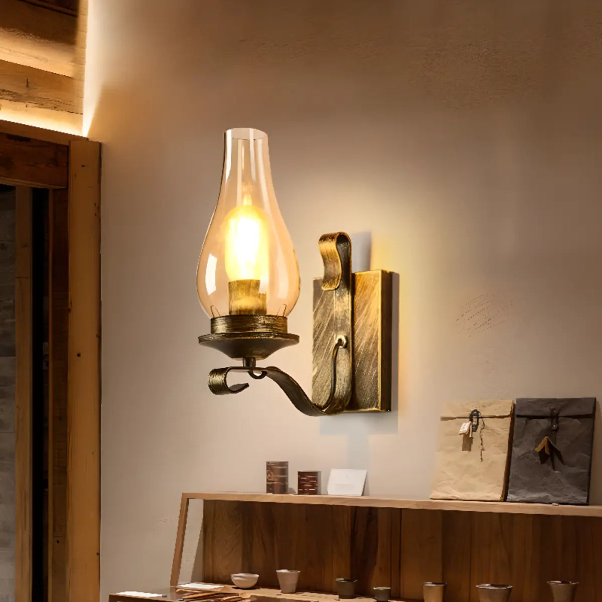 ZOWALA - Rustic Geometric Cognac Glass Wall Sconce