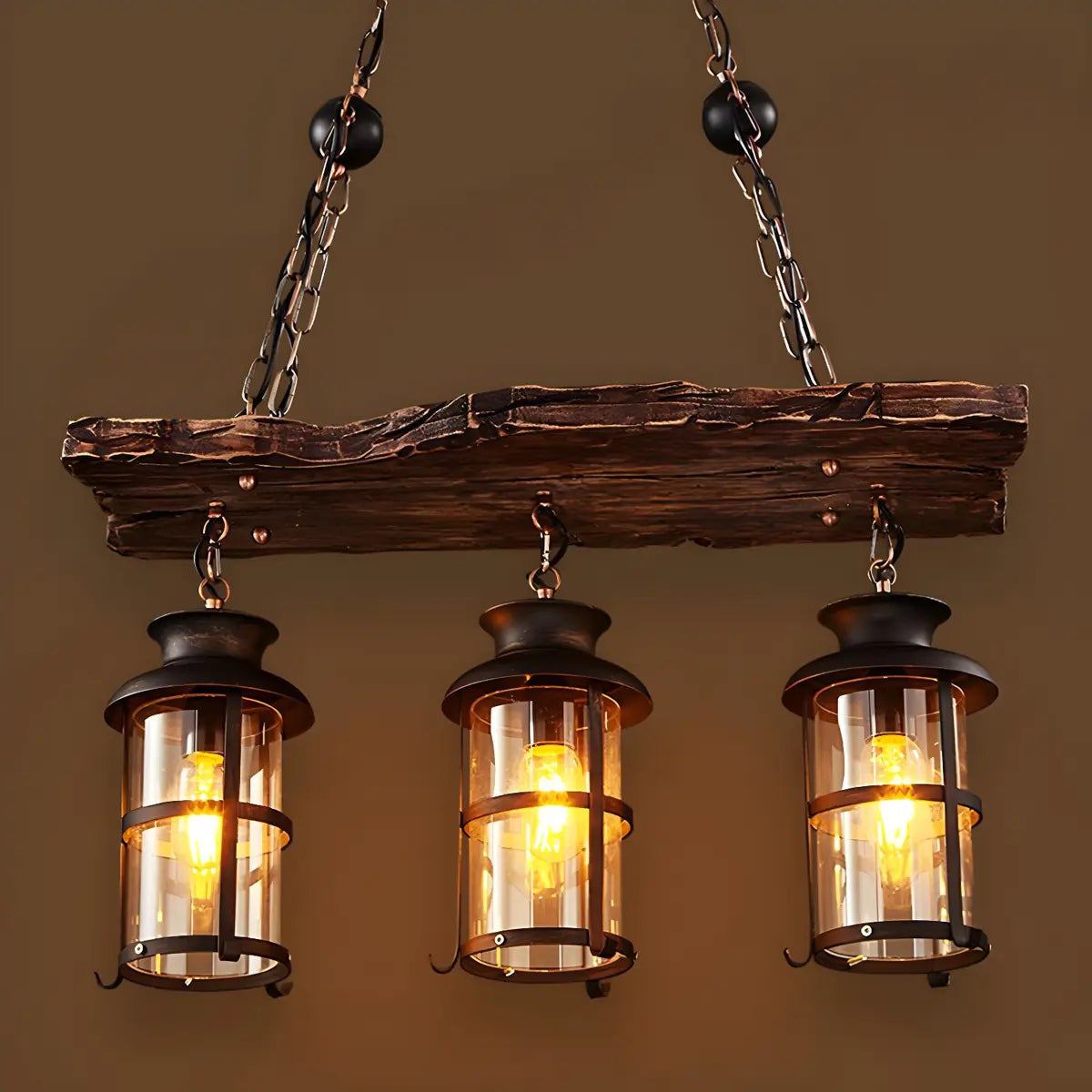 ZOWALA - Industrial Rust Wood Pendant Lantern Island Light