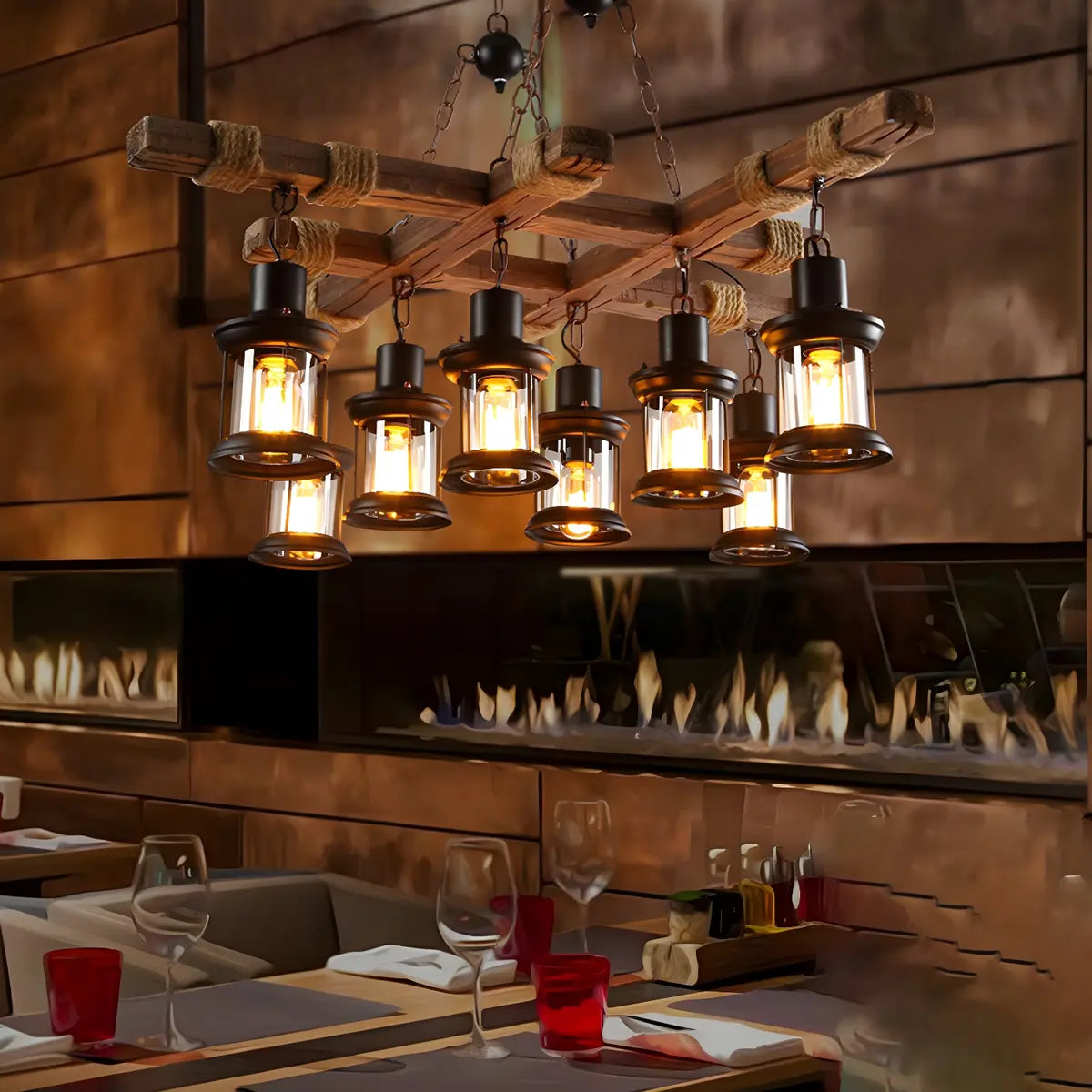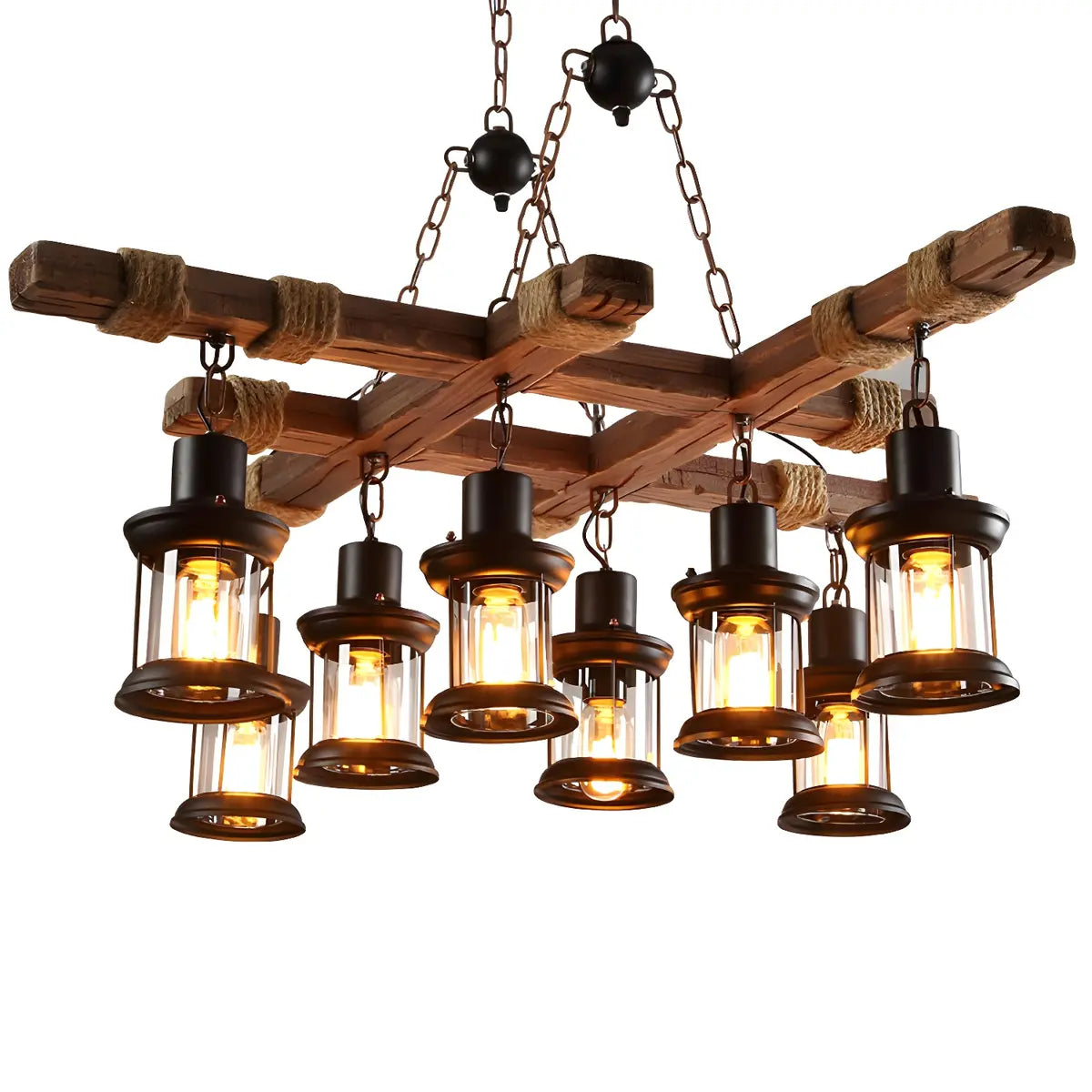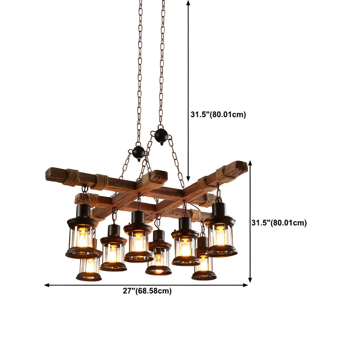 ZOWALA - Industrial Brown Wood 8-Light Lantern Chandelier