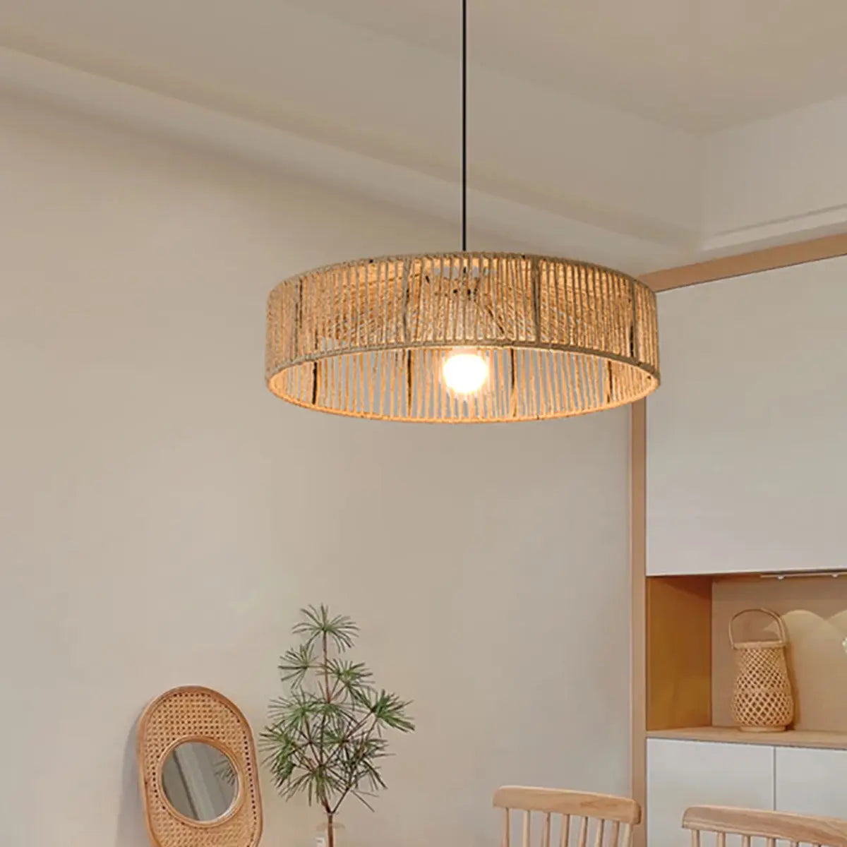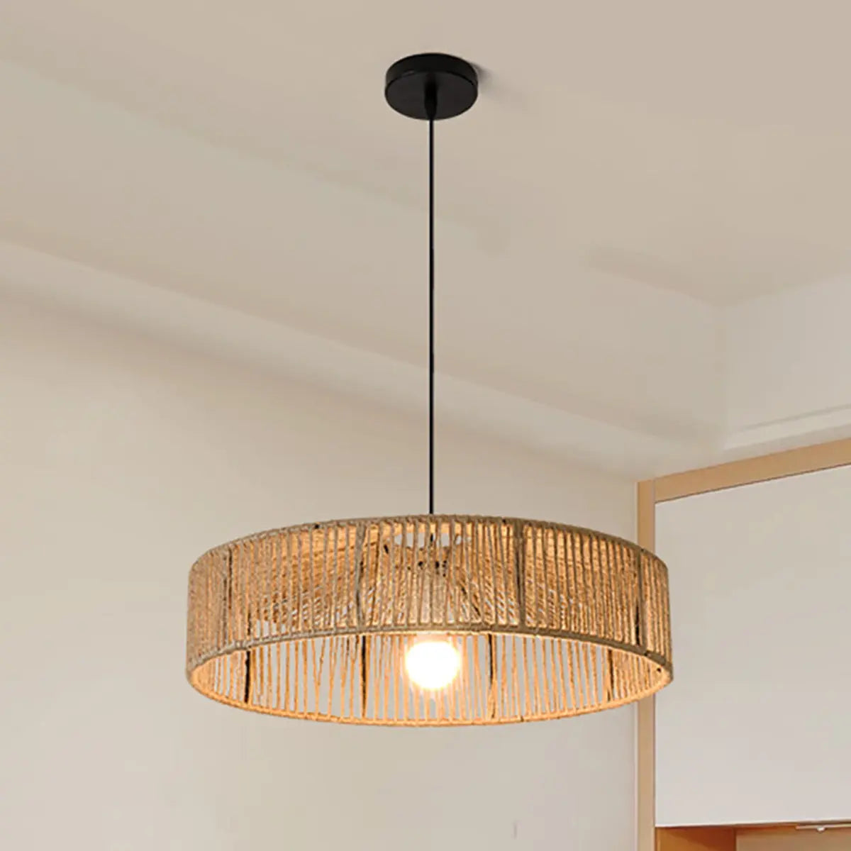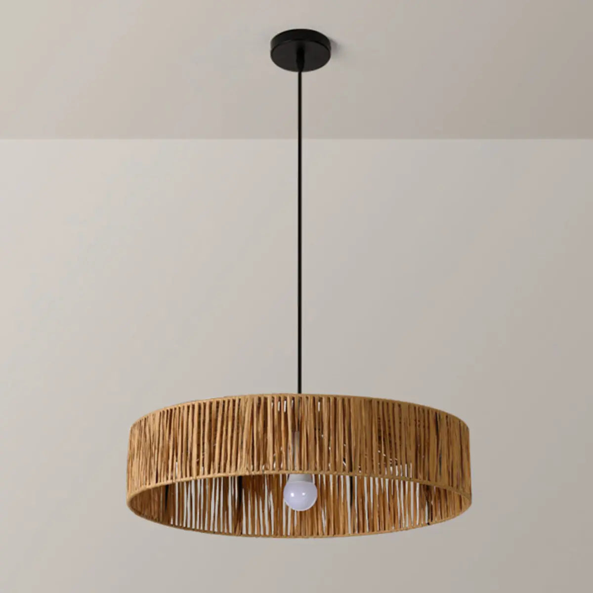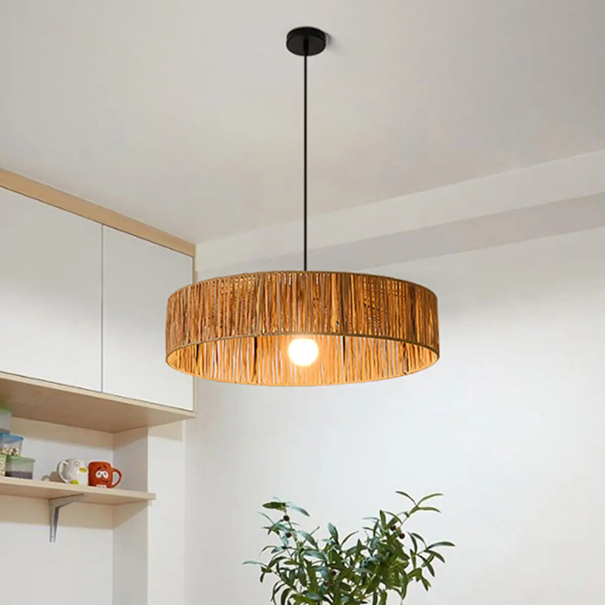 ZOWALA - Rustic Brown Rattan Drum Pendant Light