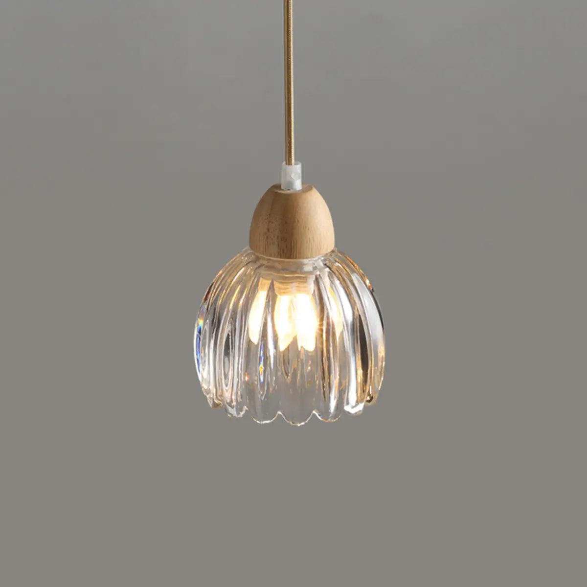 ZOWALA - Scandinavian Wood Glass Flower Pendant Light