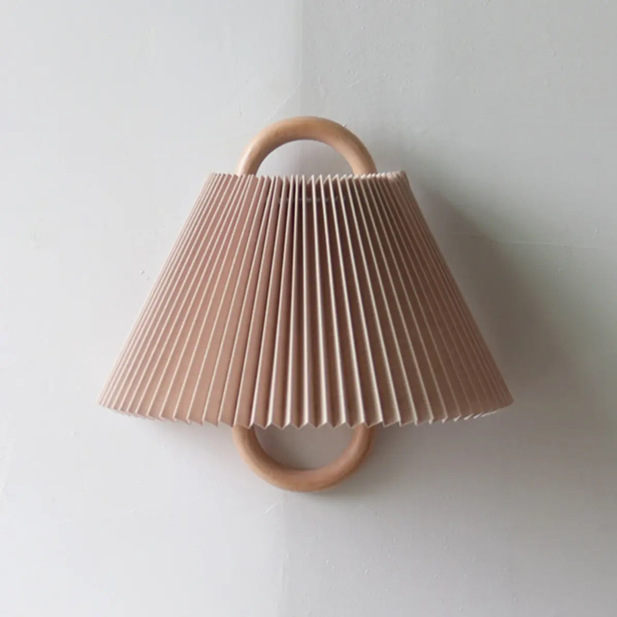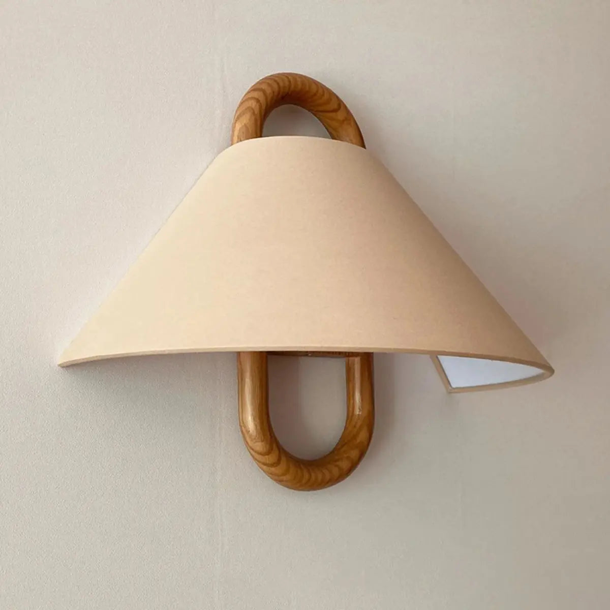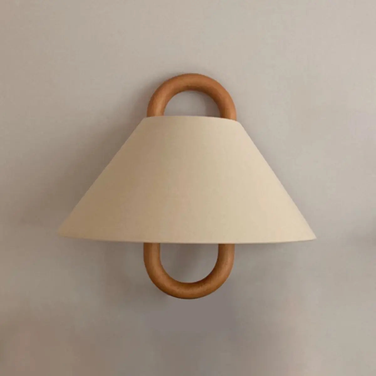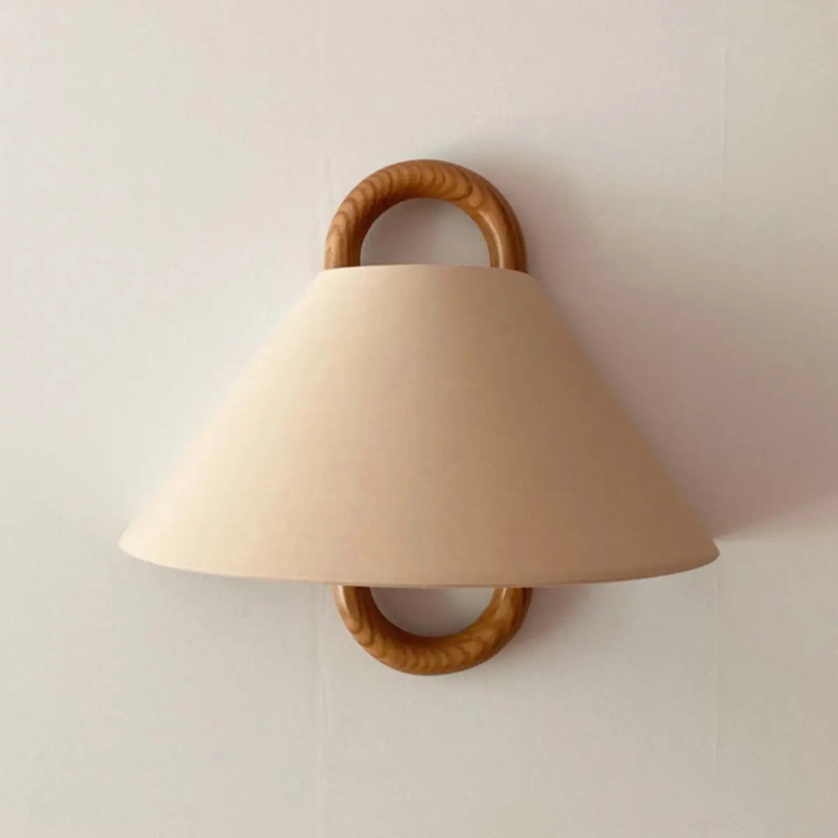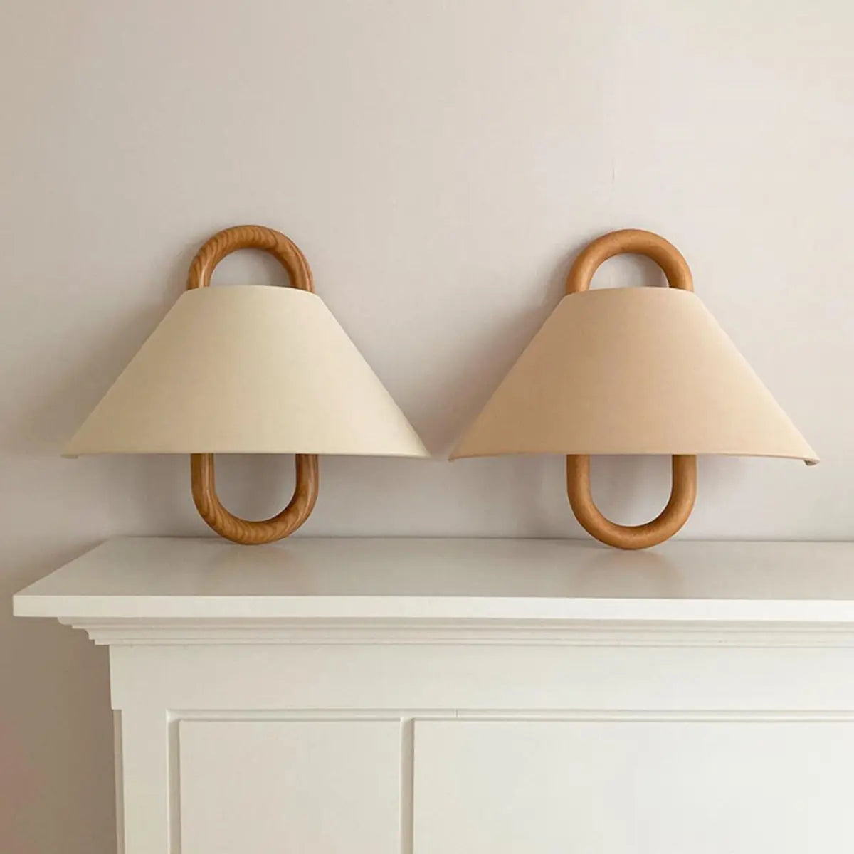 Featuring a modern, minimalist design, this wall lamp combines natural wood and premium fabrics to create a unique double cone-shaped shade perfect for interior decoration.
