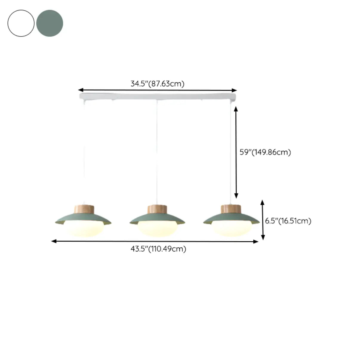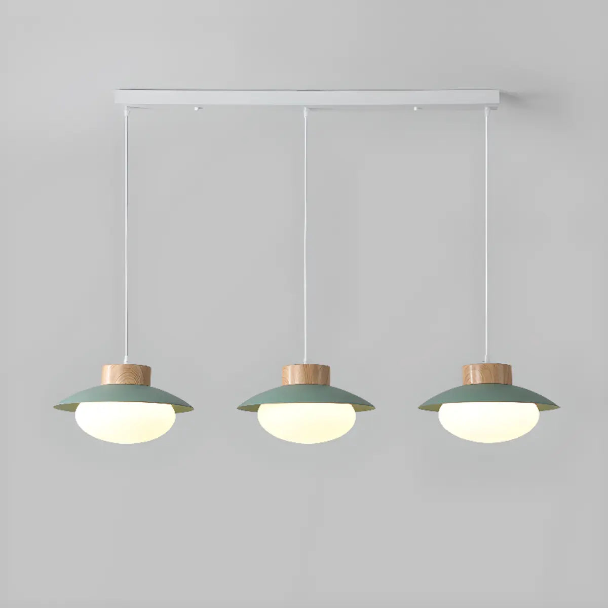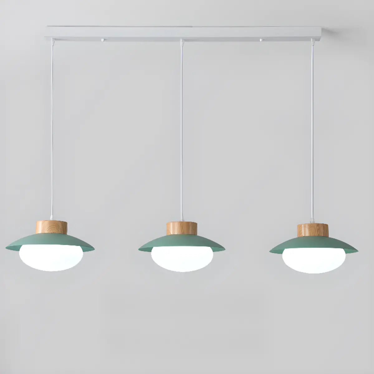 ZOWALA - Modern Wood Green Metal 3-Light Pendant Light