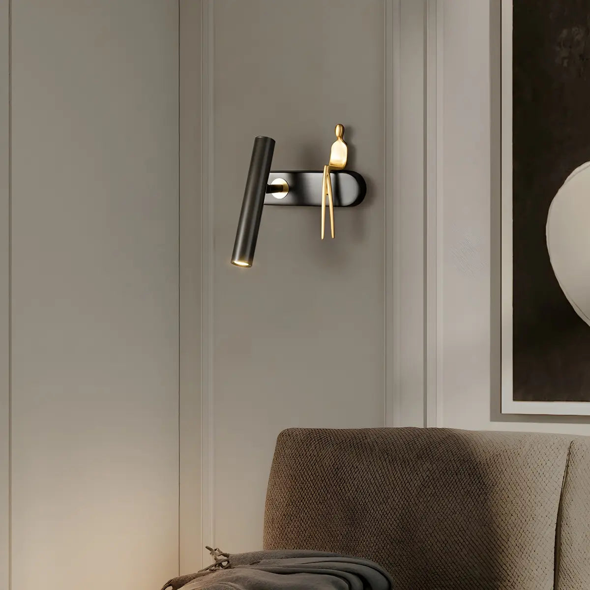 ZOWALA - Sculptural Humanoid Gold Cylinder Wall Light