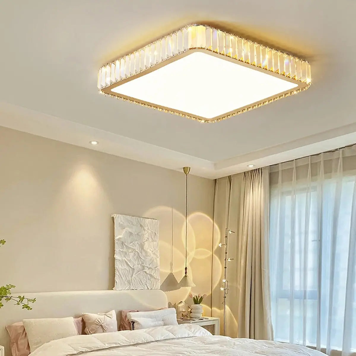 This aemi flush ceiling light, with its golden square design and perfect integration of crystal inlay, brings a bright and luxurious atmosphere to the interior. The light emits a charming light and shadow through the crystal clear crystal, as if the stars are falling, adding unparalleled beauty. As part of home decoration, it is not only a source of light but also a work of art.