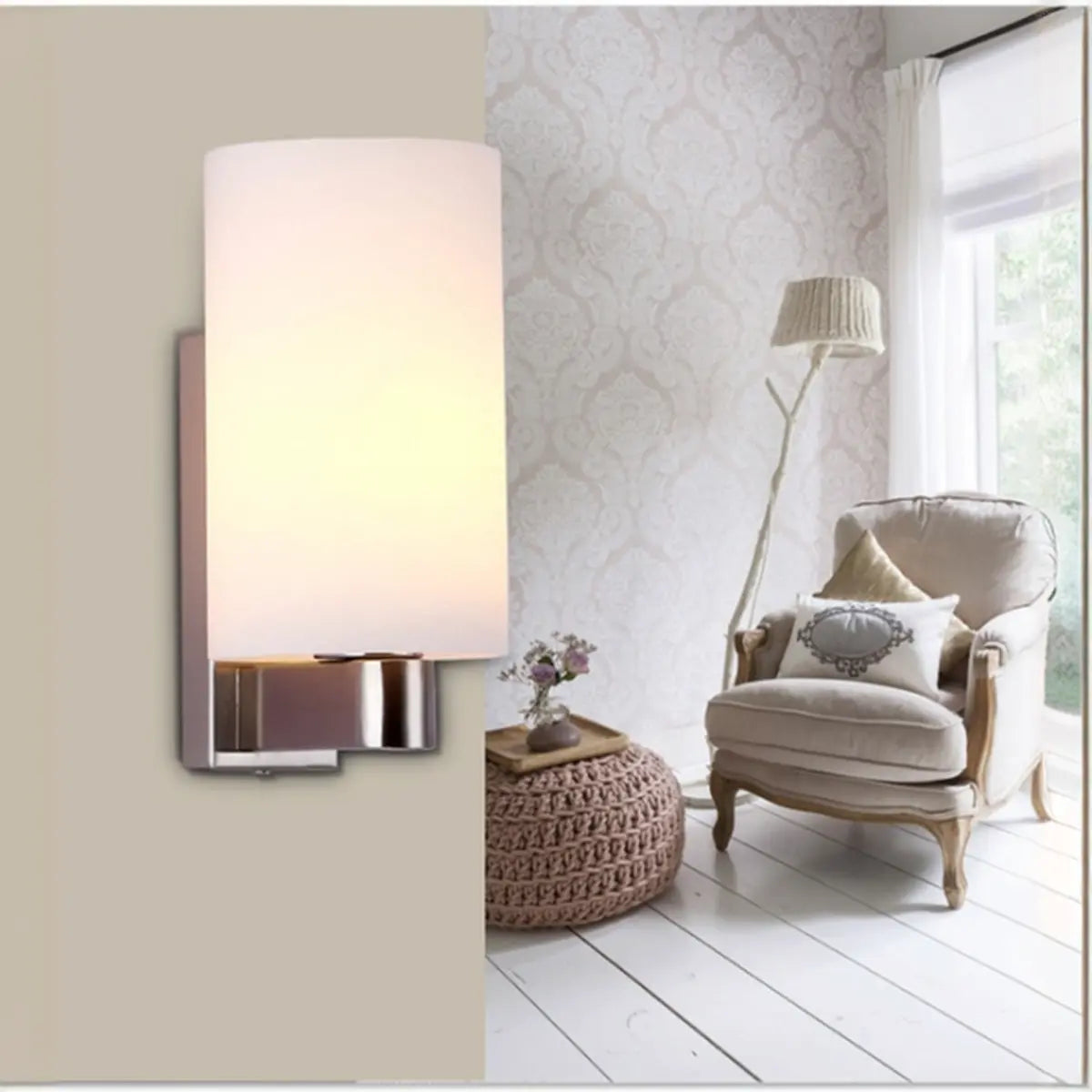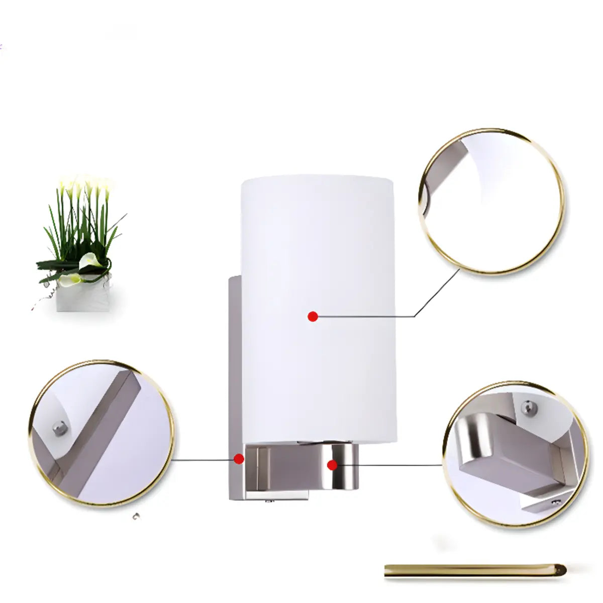 ZOWALA - Silver Modern White Glass Cylinder Wall Sconce