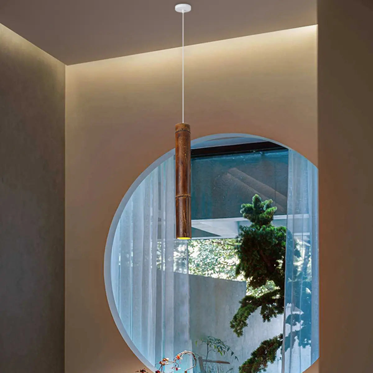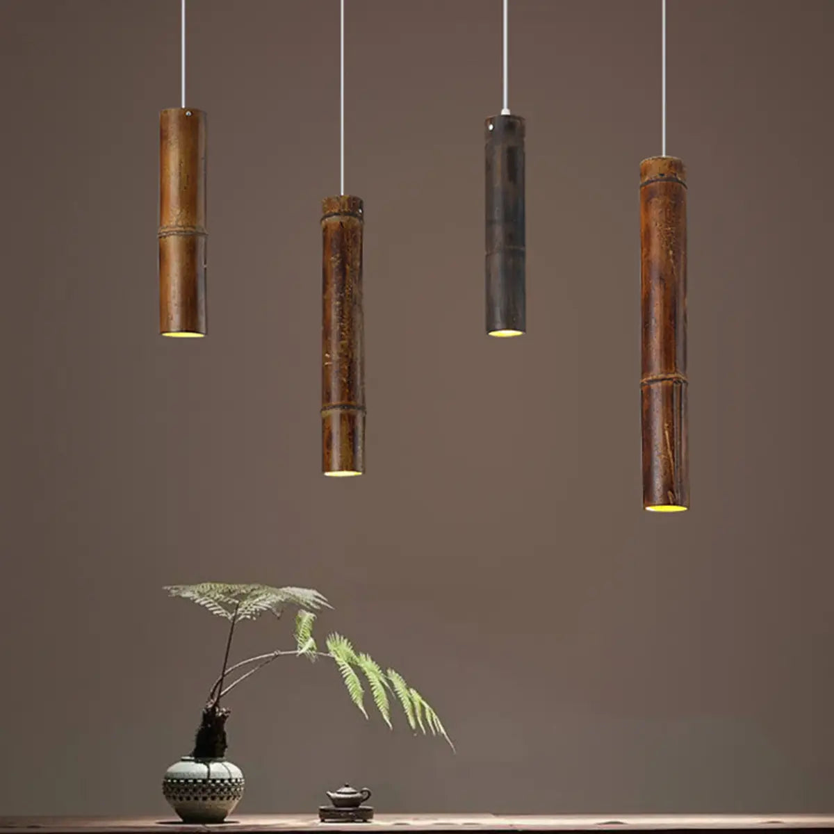 ZOWALA - Simple Brown Bamboo Cylinder Hanging Light