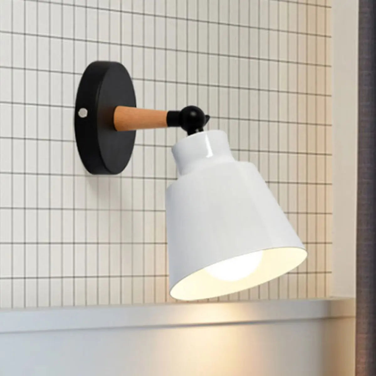 - The wall lamp features a simple tapered iron shade that provides soft and even light distribution, enhancing the ambience of a bedroom or living room.