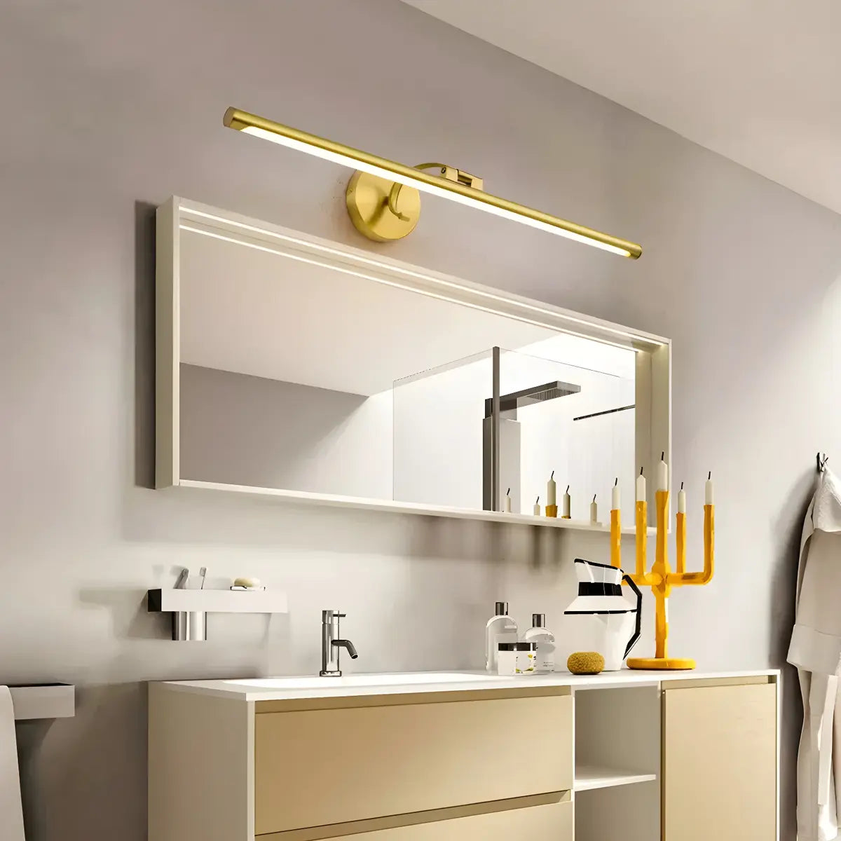 This modern and simple gold LED bathroom mirror light features a unique folding arm design with smooth and elegant lines, adding a touch of fashion to your bathroom.