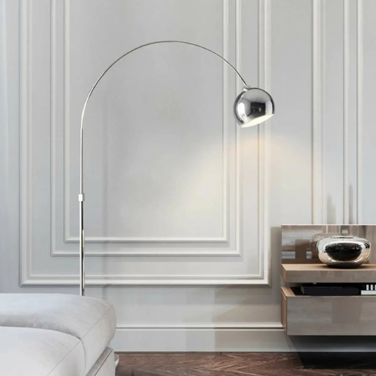 ZOWALA - Simple Silver Adjustable Dome Arched Floor Lamp