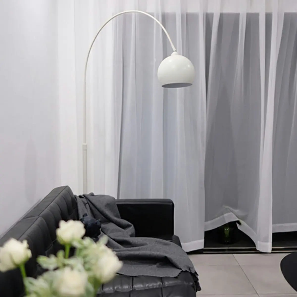 This modern curved floor lamp combines stylish design with practical functionality, perfect for creating an elegant ambiance in your living room or bedroom.