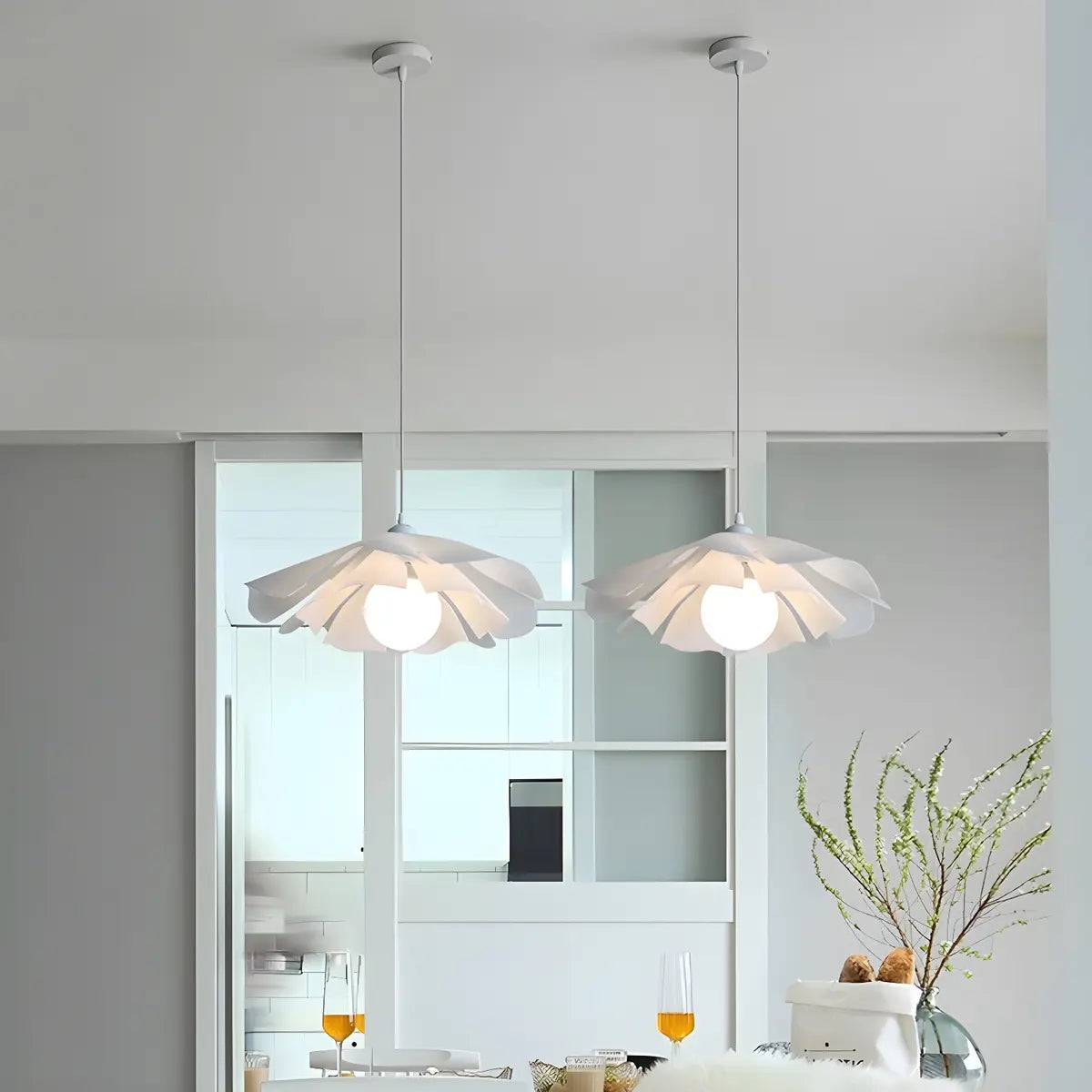 This pendant lamp adopts a unique petal-shaped design, just like an elegant white flower hanging in the air, emitting soft light, adding a fresh and natural atmosphere to your kitchen, perfectly integrating the aesthetic values of modern and nature.