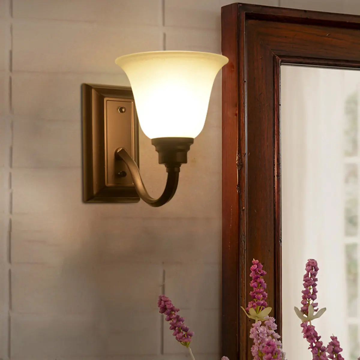ZOWALA - Simple White Bell Glass Brown Vanity Light