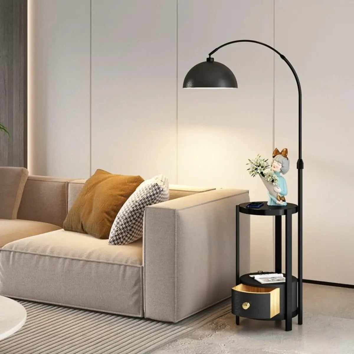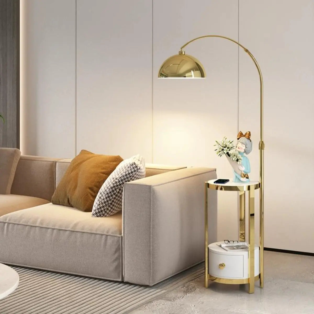 ZOWALA - Simple White Dome Floor Lamp with Table